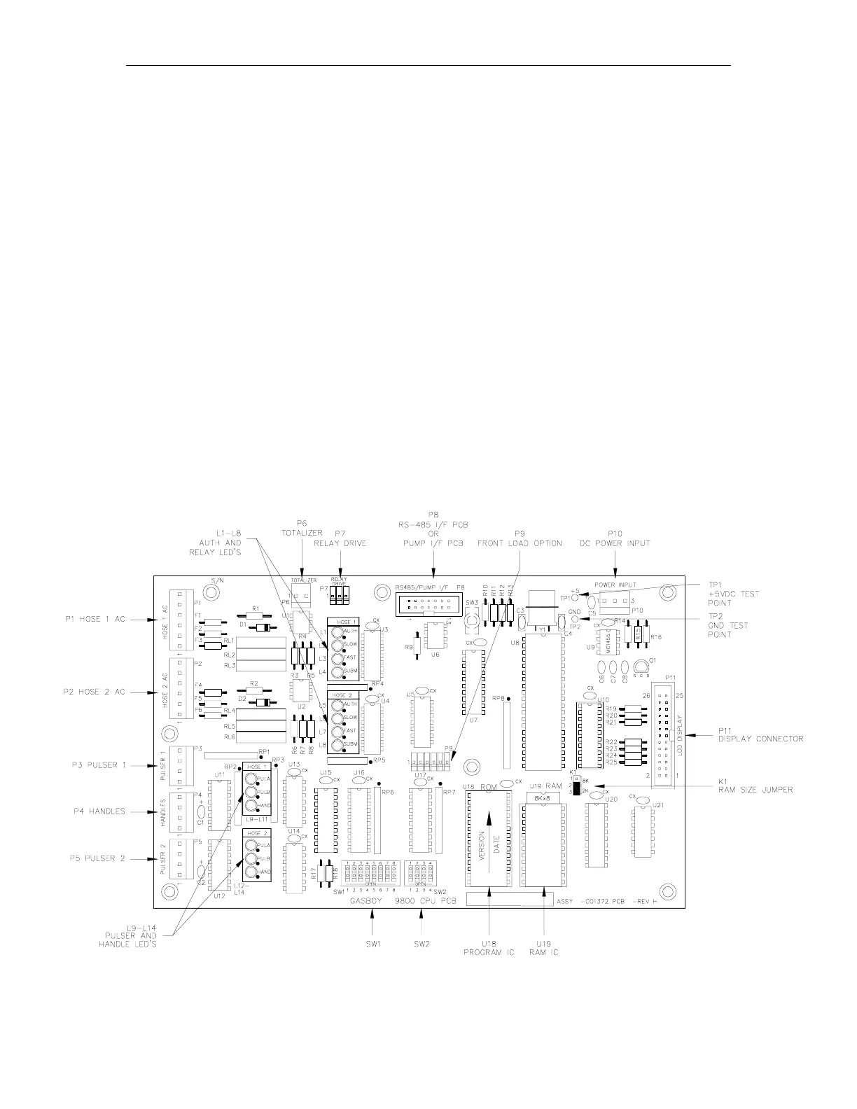 The CPU PCB is the heart of the GASBOY Series 9800A. This CPU PCB:
