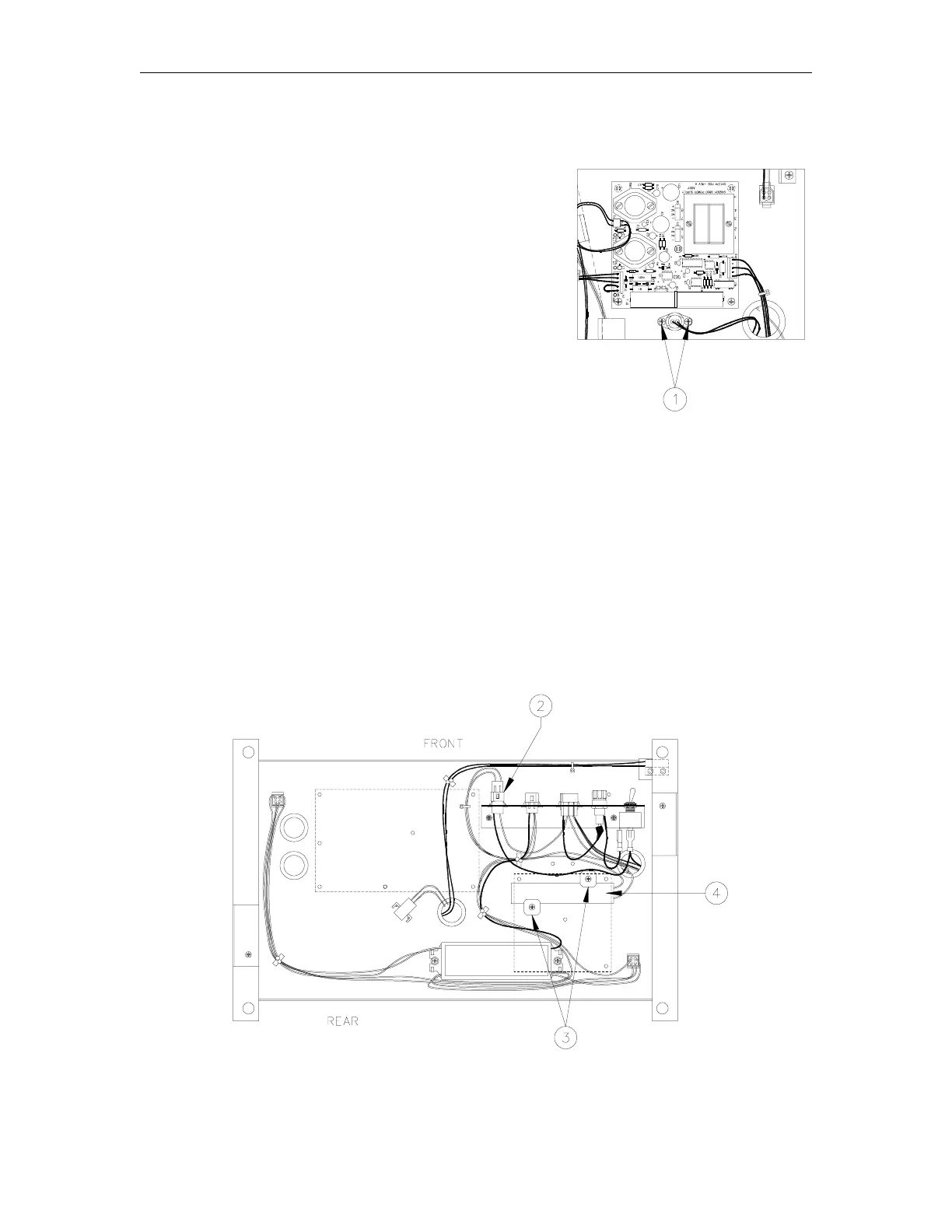 4. Remove the two Phillips screws [3] and fiber washers retaining the heater strip.