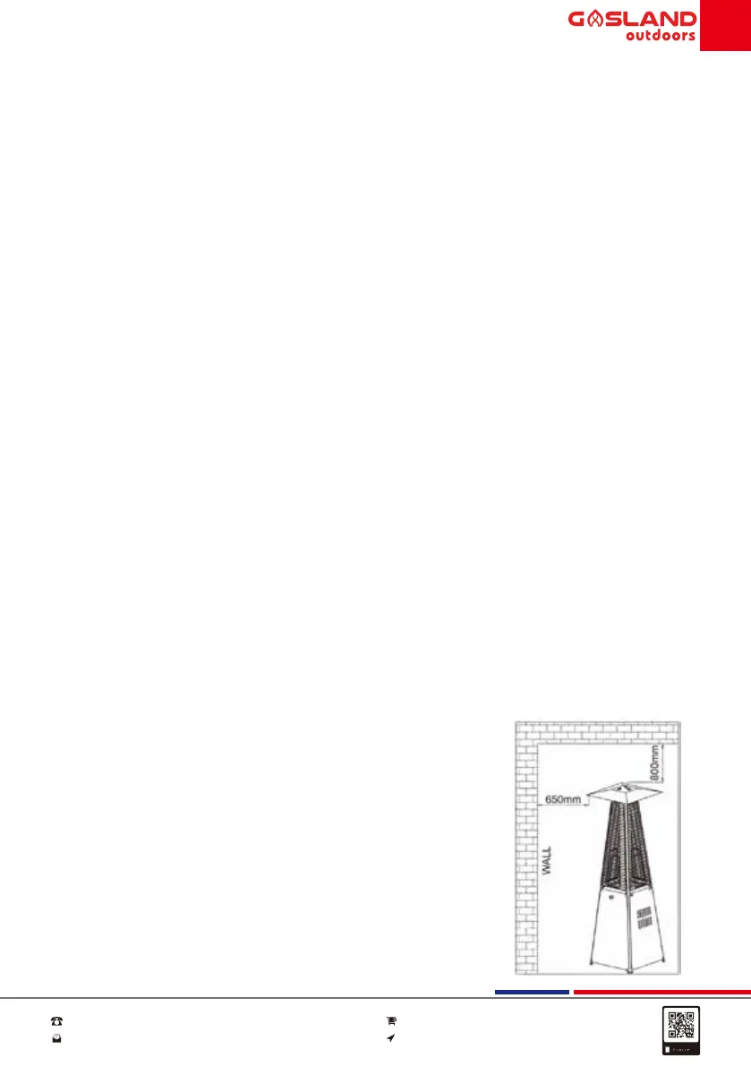 • Storage of the heater indoors is permitted only if the cylinder is disconnected