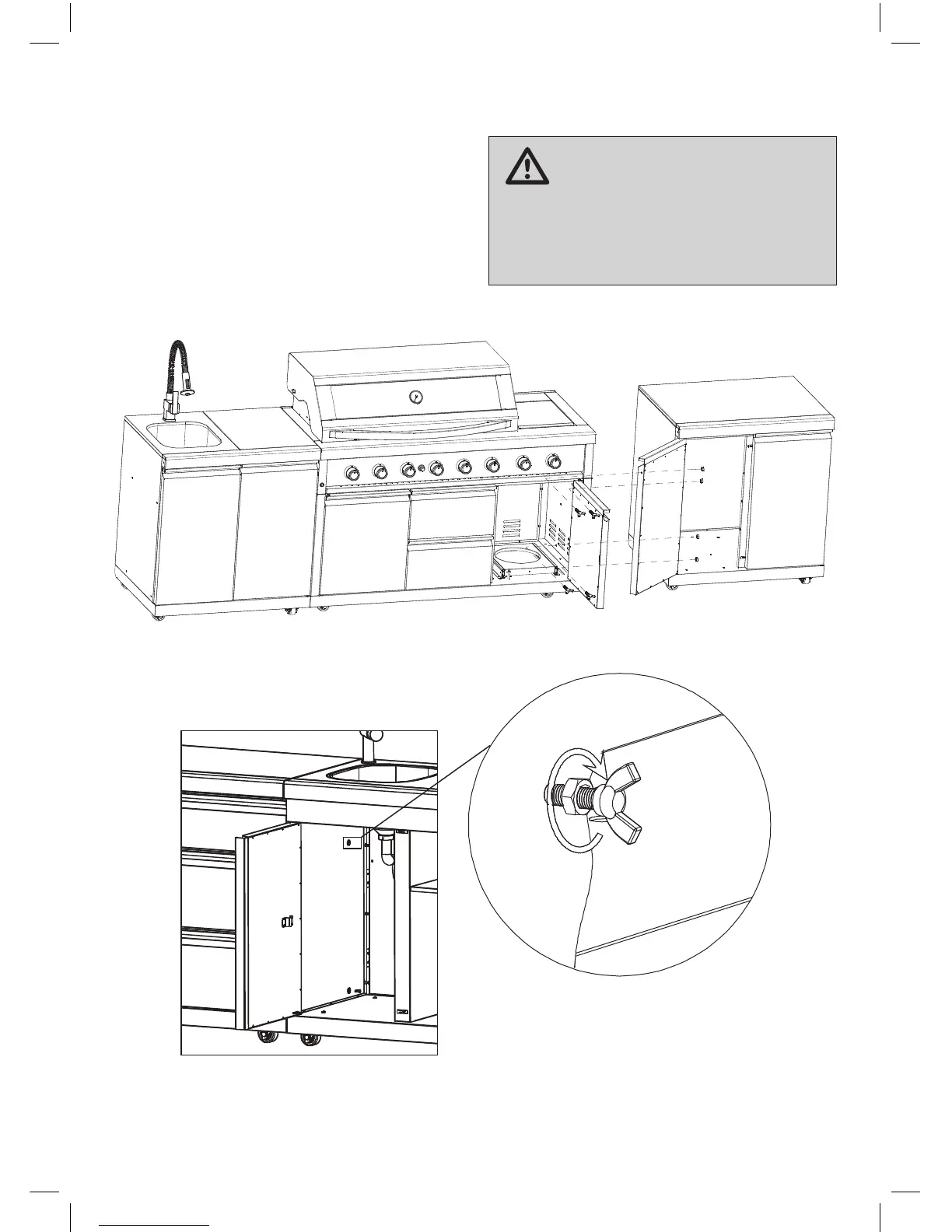 To join your kitchen together use 2 wing screws and nuts