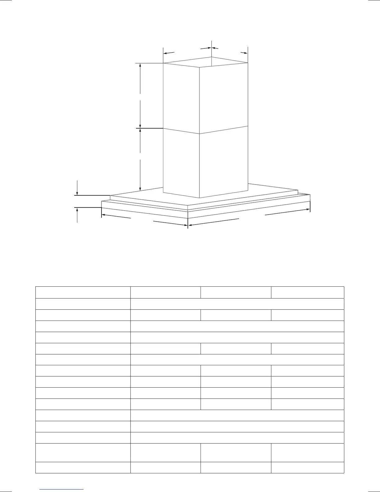 Height Above Cooking Surface 1200mm - Minimum 1250mm - Maximum