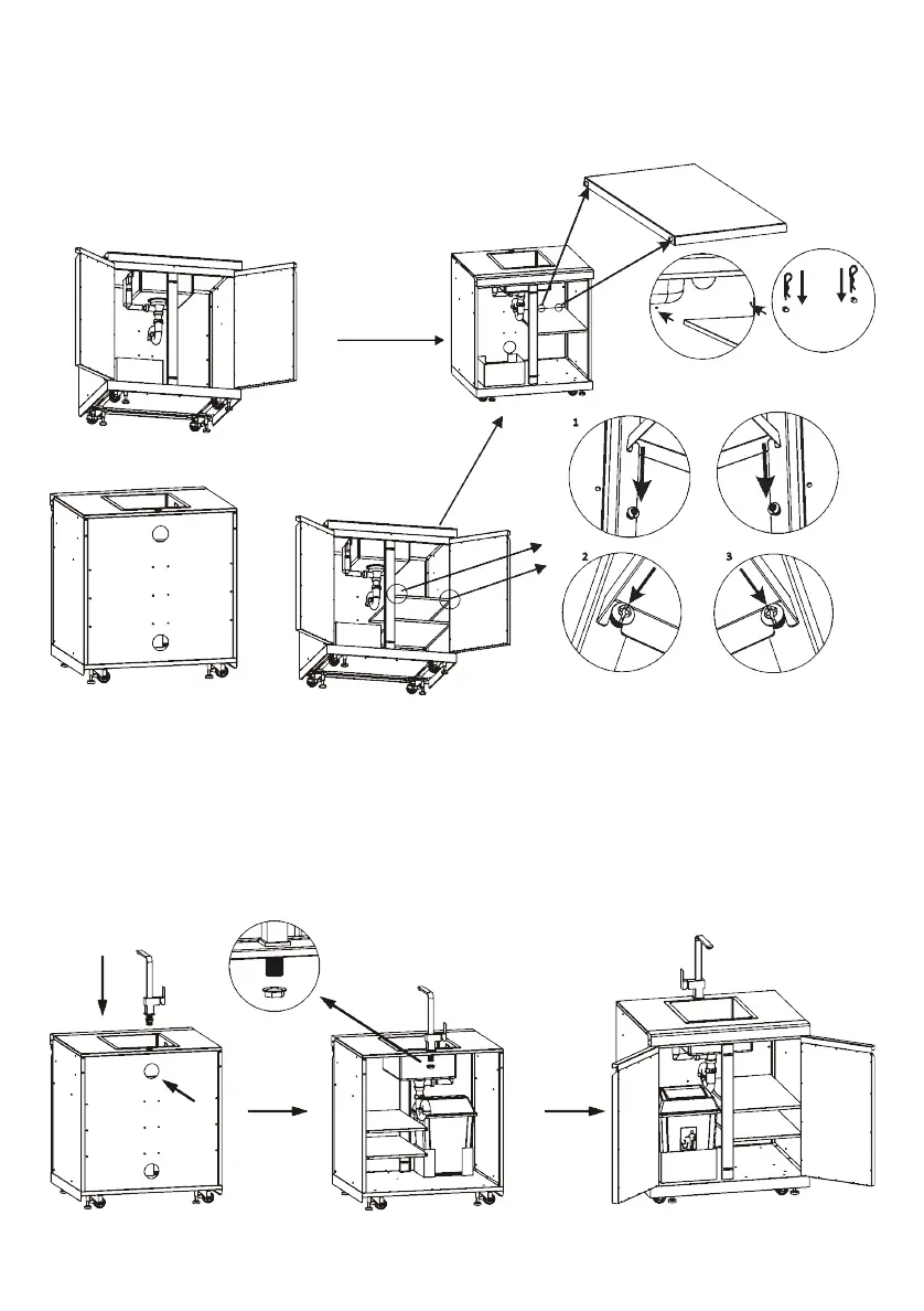 Insert the tap thread through the hole in the top and secure with the nut from underneath, inside the cabinet.