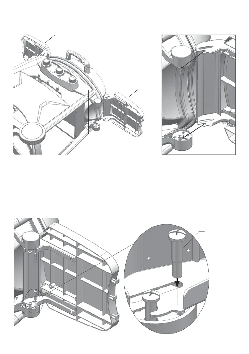 Secure with the fasteners as shown. Note: Ensure the side shelves are folded down when moving the BBQ.