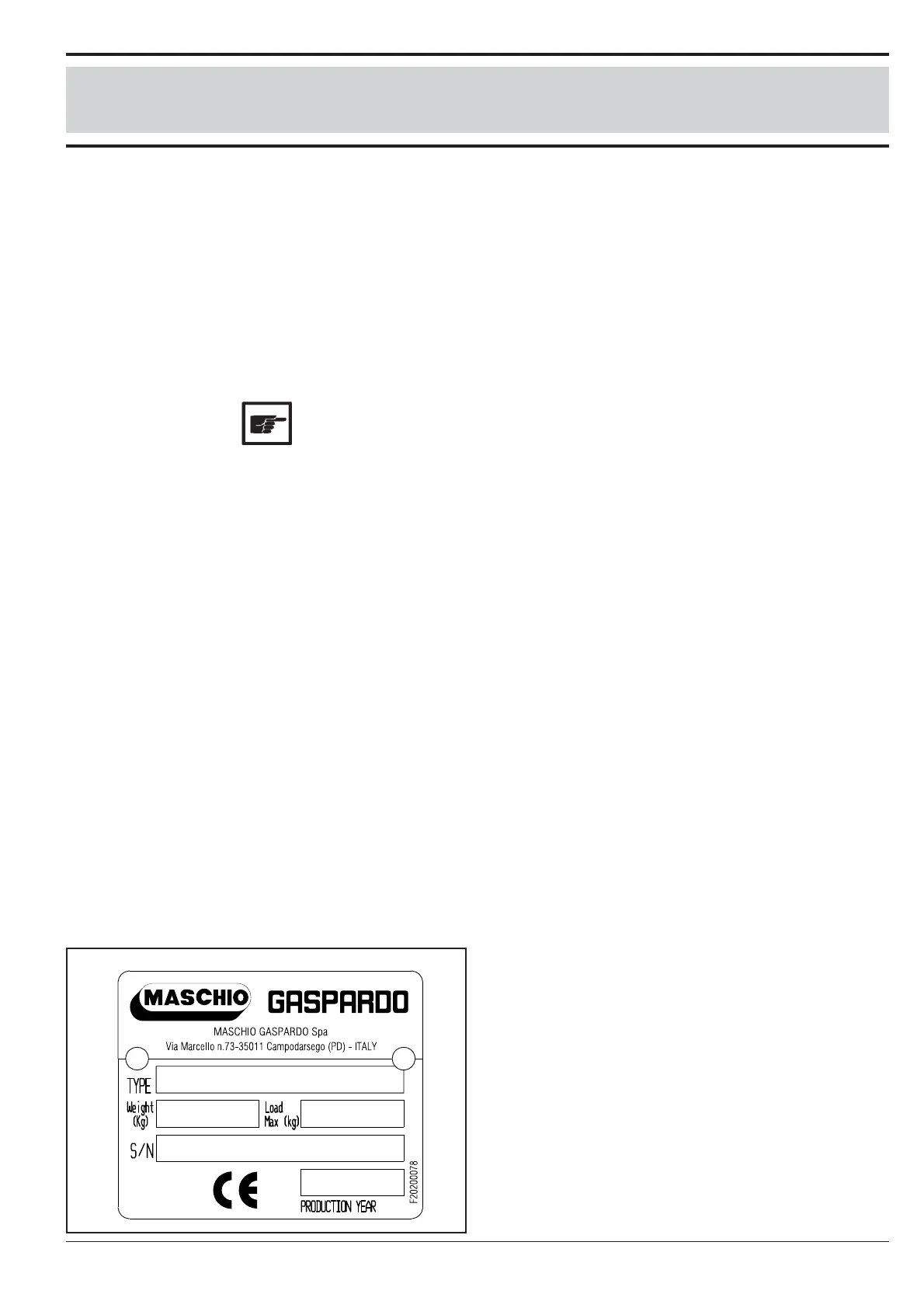 Ogni singola attrezzatura, è dotata di una targhetta di identifica-