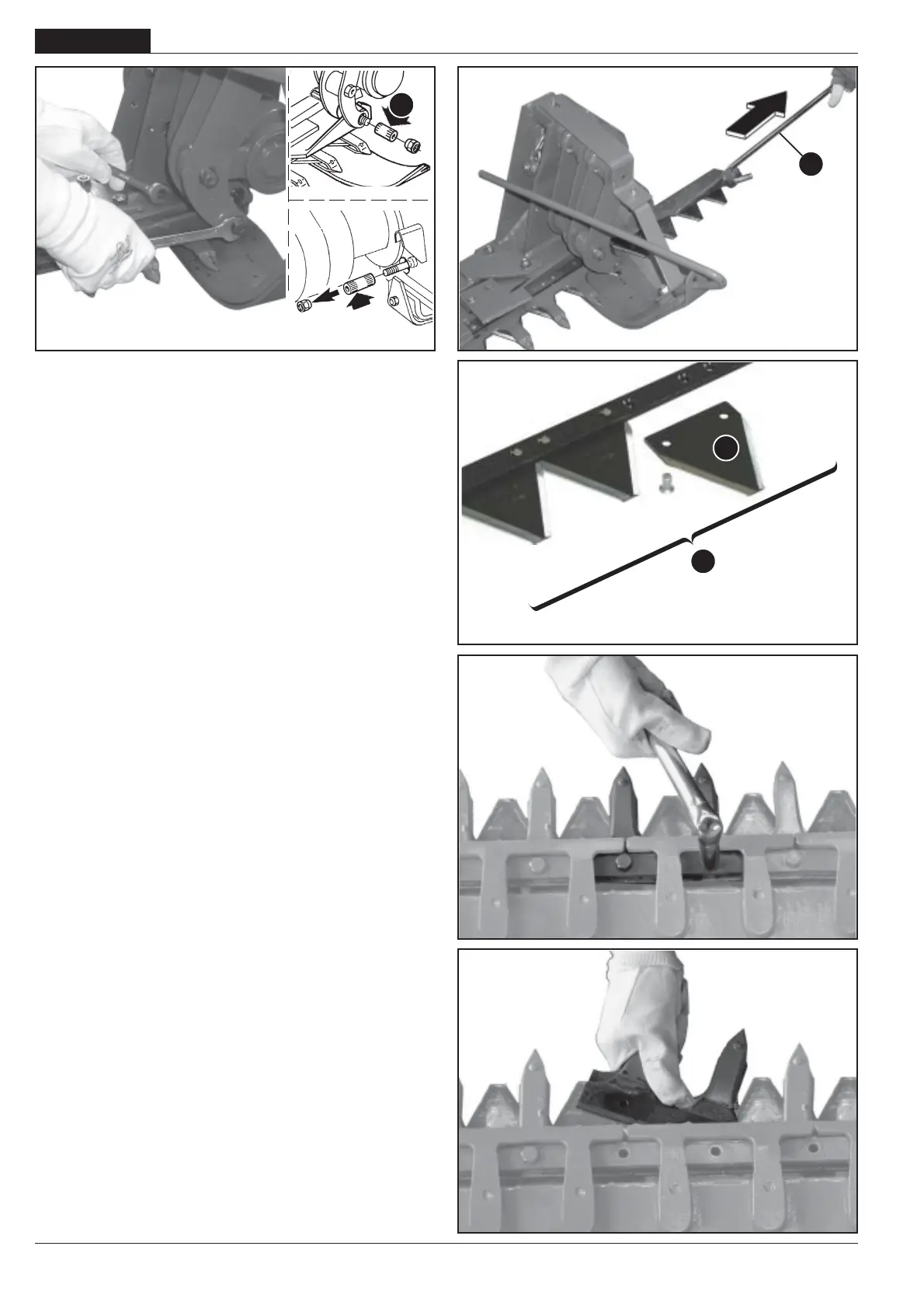 - Den Mähbalken bei auf dem Boden aufliegender Ausrüstung