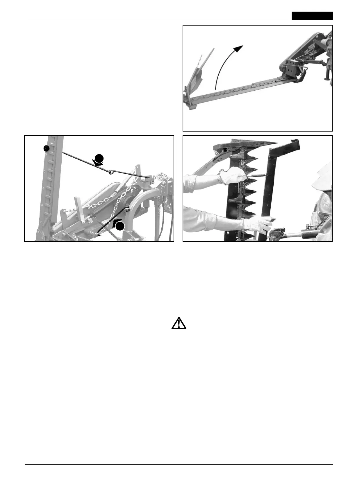rales de elevación del tractor; levante la barra de corte (Fig. 49);