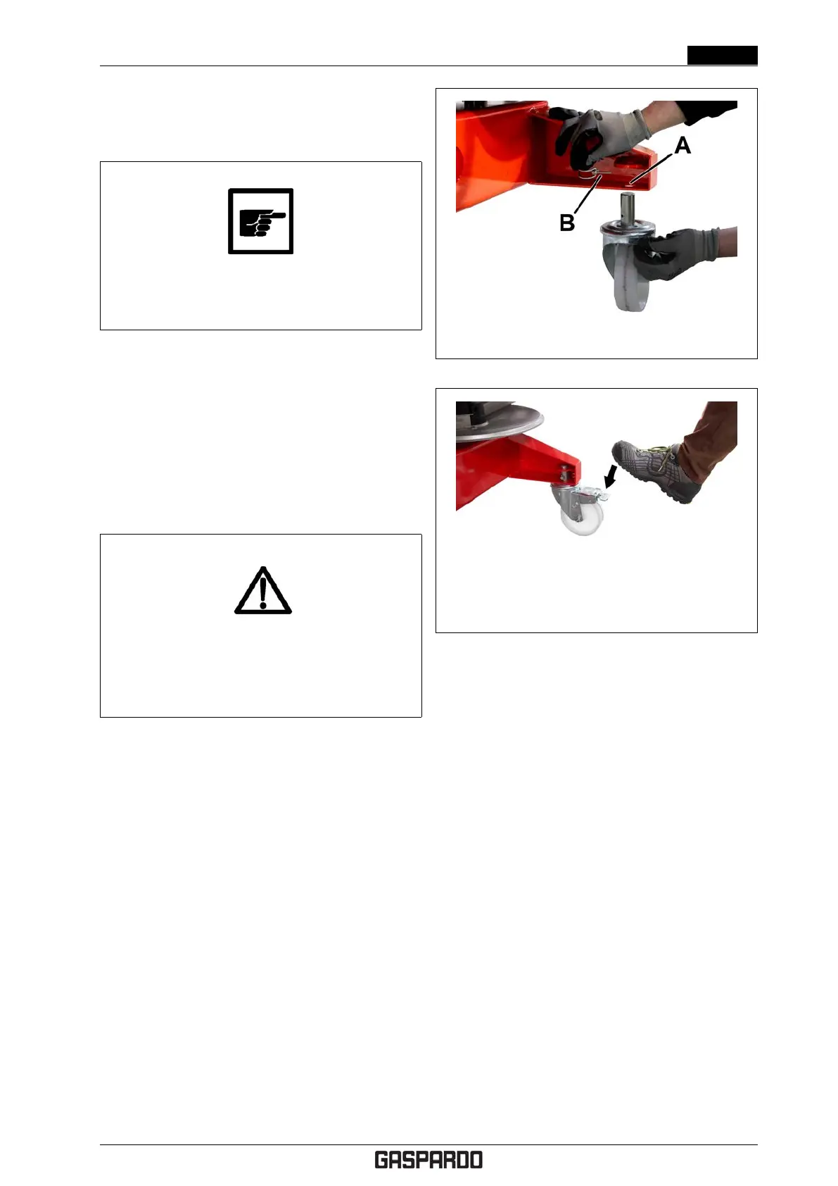 housing (A) see fig. 4.29 and lock the wheels with