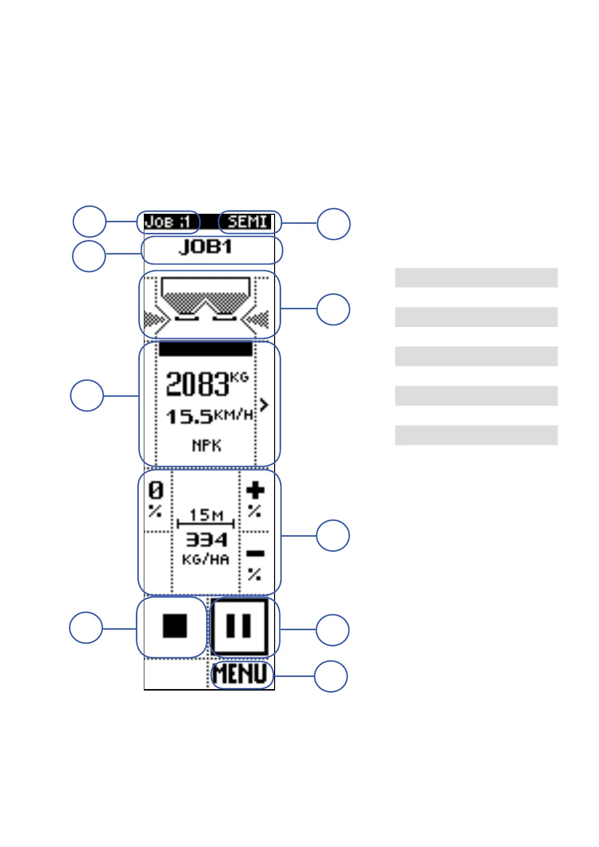 Operating screen: SEMI-AUTOMATIC mode