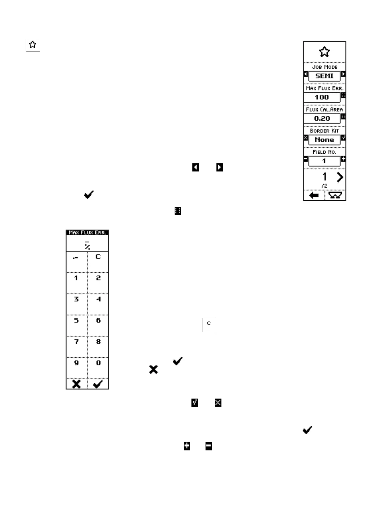 • MAX FLUX ERR.: in semi-automatic mode, it’s the maximum allowed %