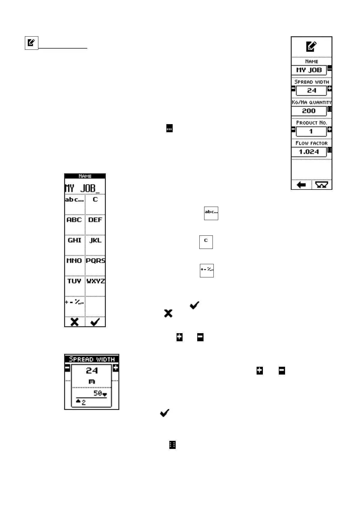 • SPREAD WIDTH: total spreading width (left + right) for the selected job;