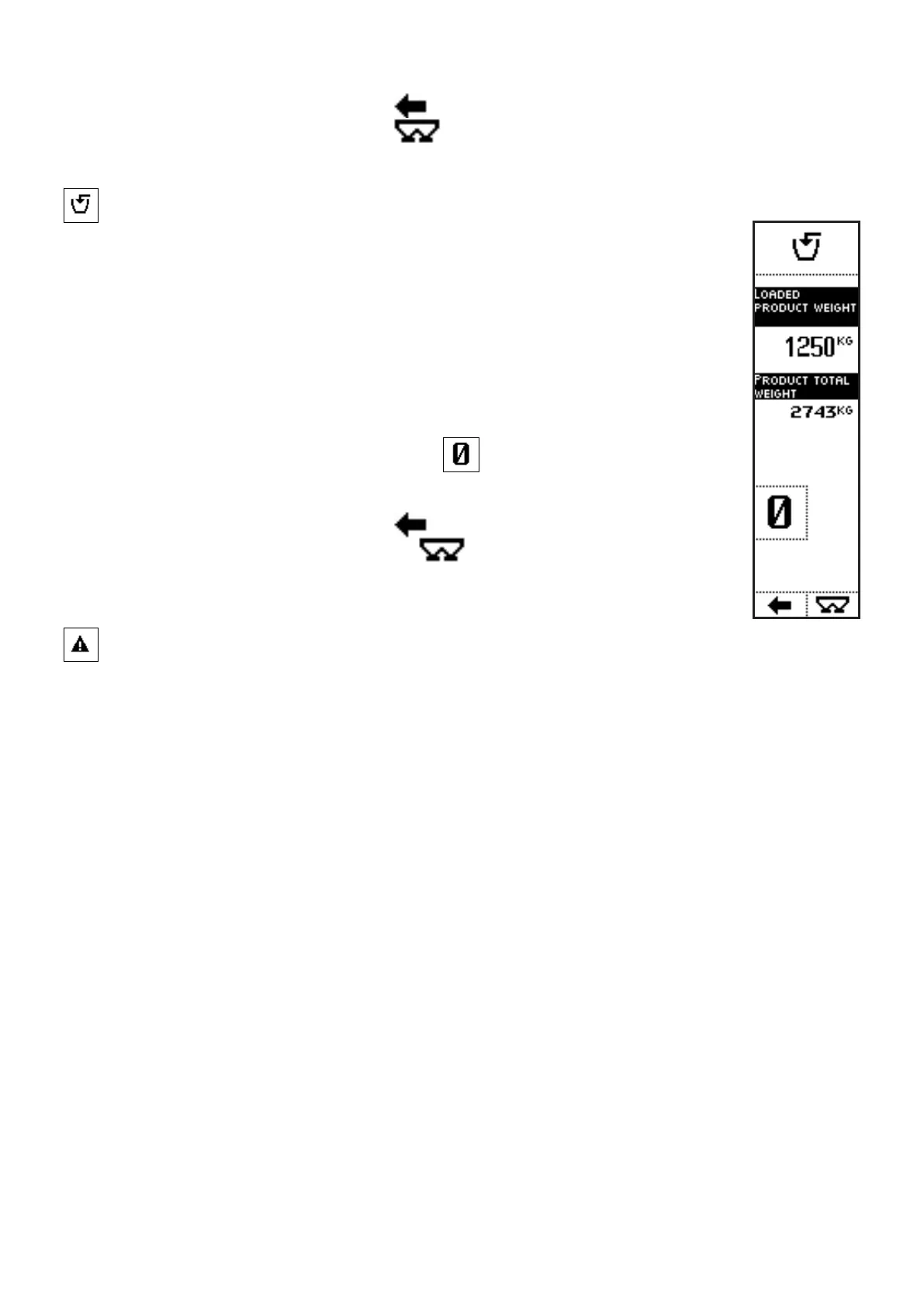 • LOADED PRODUCT WEIGHT: partial weight, referring to the weight that
