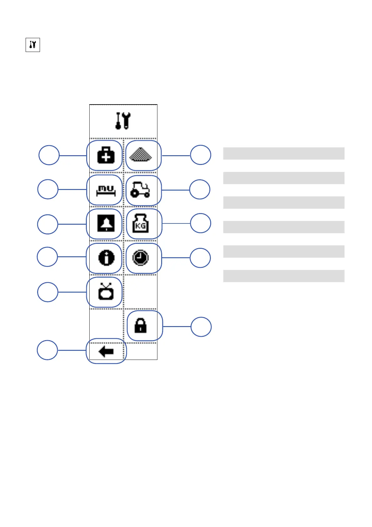 The Advanced Settings menu is made of some icons which leads to other menus, described by the icons