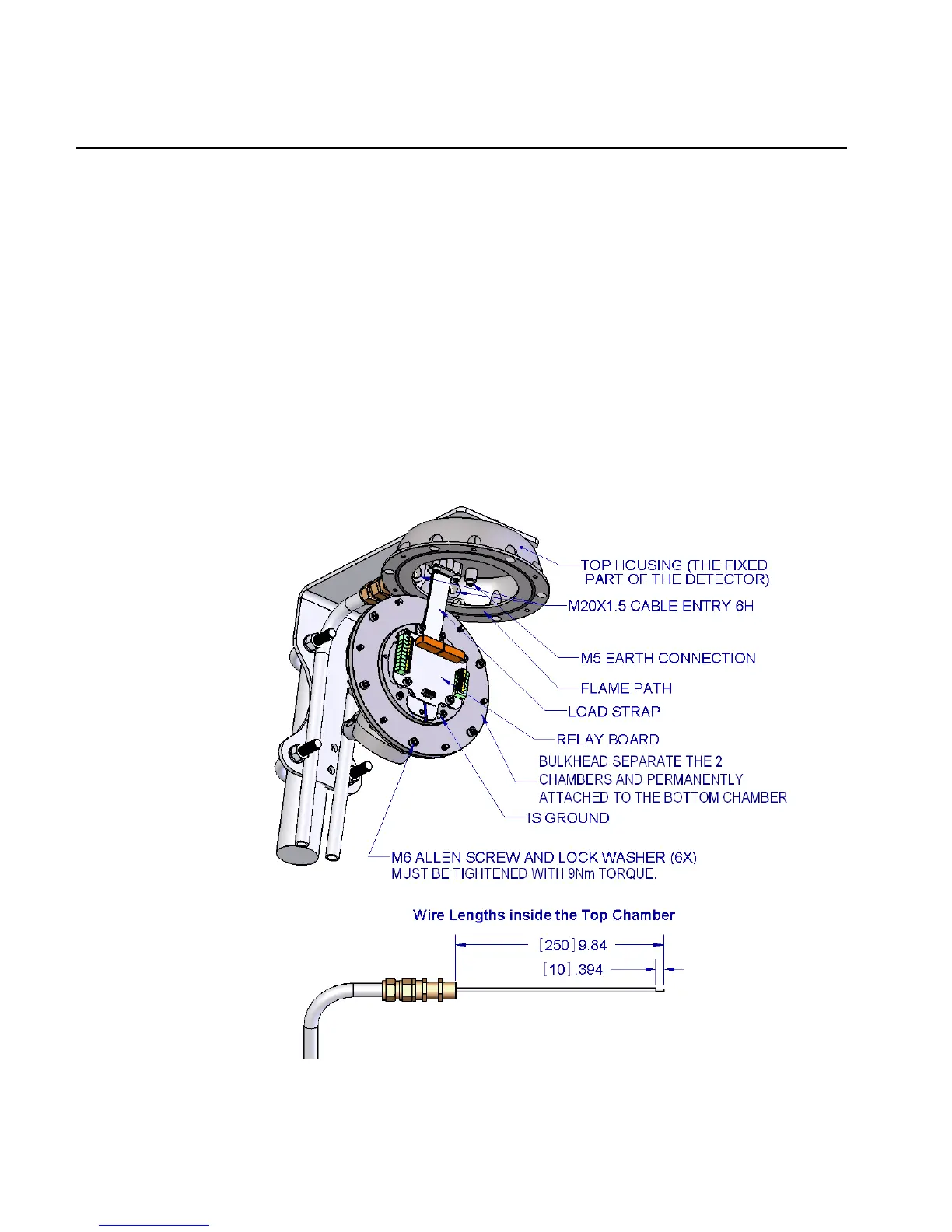fixed by retaining washers to the bottom chamber. The bottom chamber of the detector is supported by