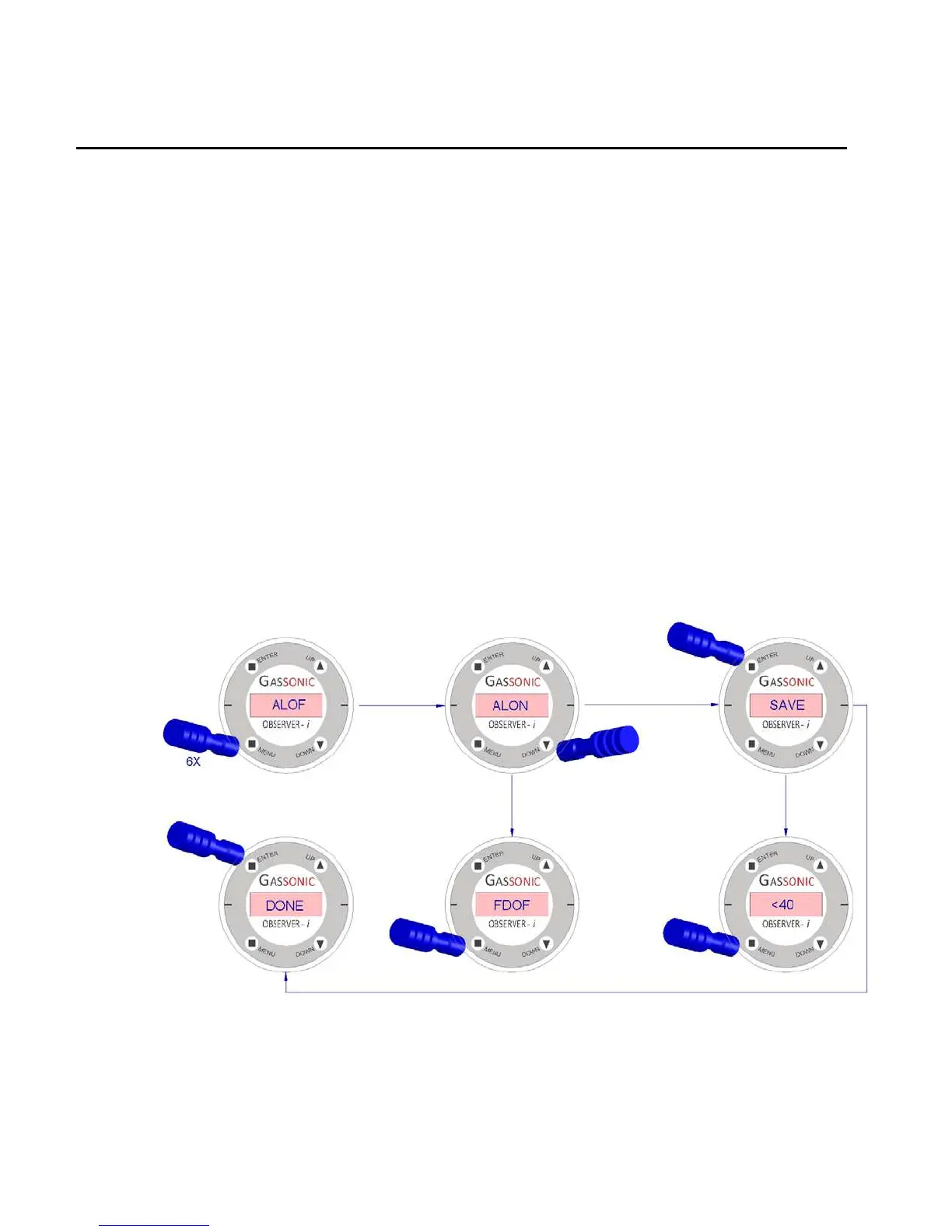 Activate the MENU switch six times with the magnet-stick. The current Alarm Latching status will be