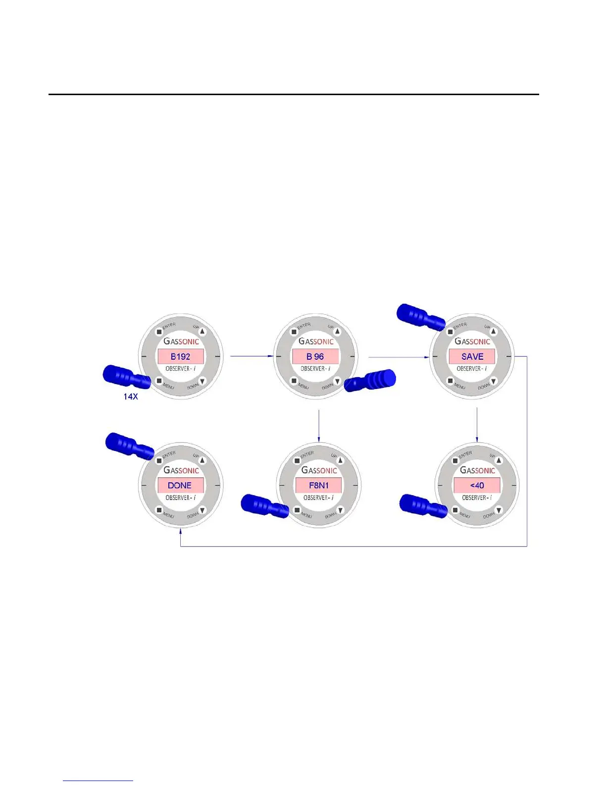 Activating the MENU switch fourteen times will display the default setting baud rate “B192” (19200).