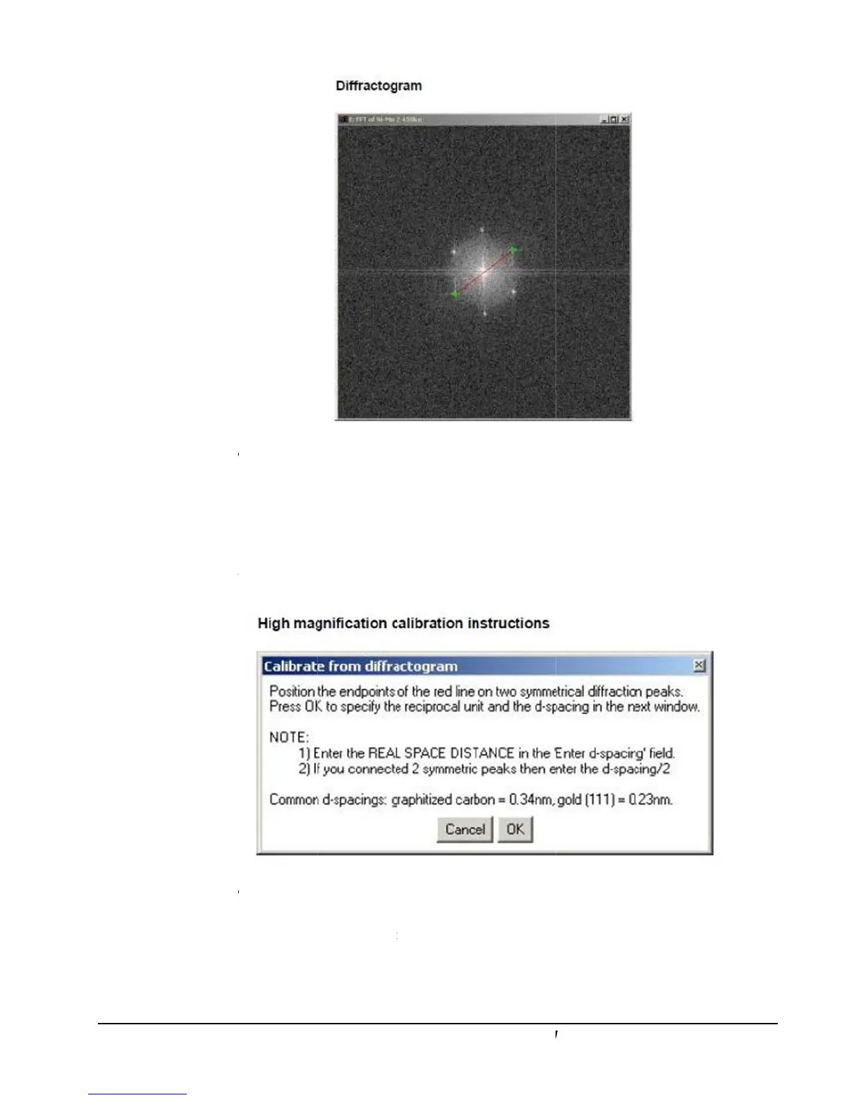 Gatan K2 Summit - Figure 1-50. Distance between Peaks in the Calculated Diffractogram; Figure 1-51. Calibration Instructions