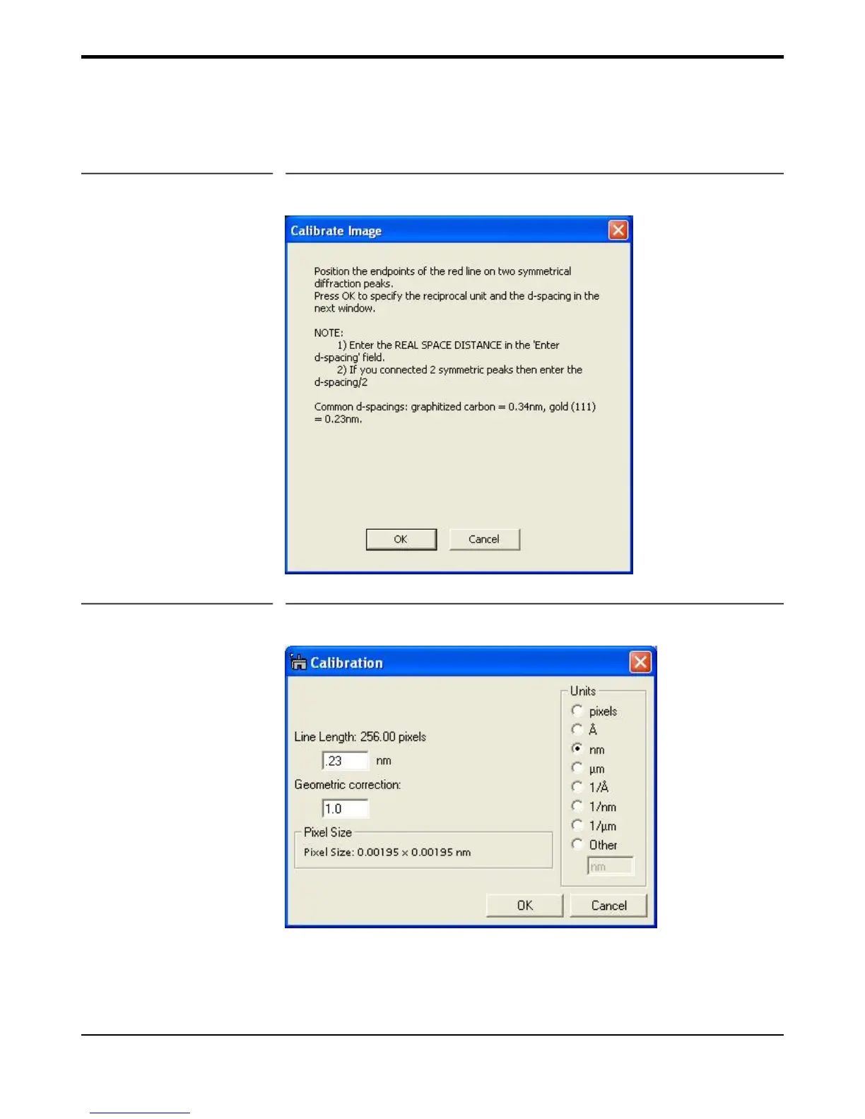 Gatan ORIUS SC 200D - Figure 2-13 High Magnification Calibration Instructions; Figure 2-14 Calibration Window