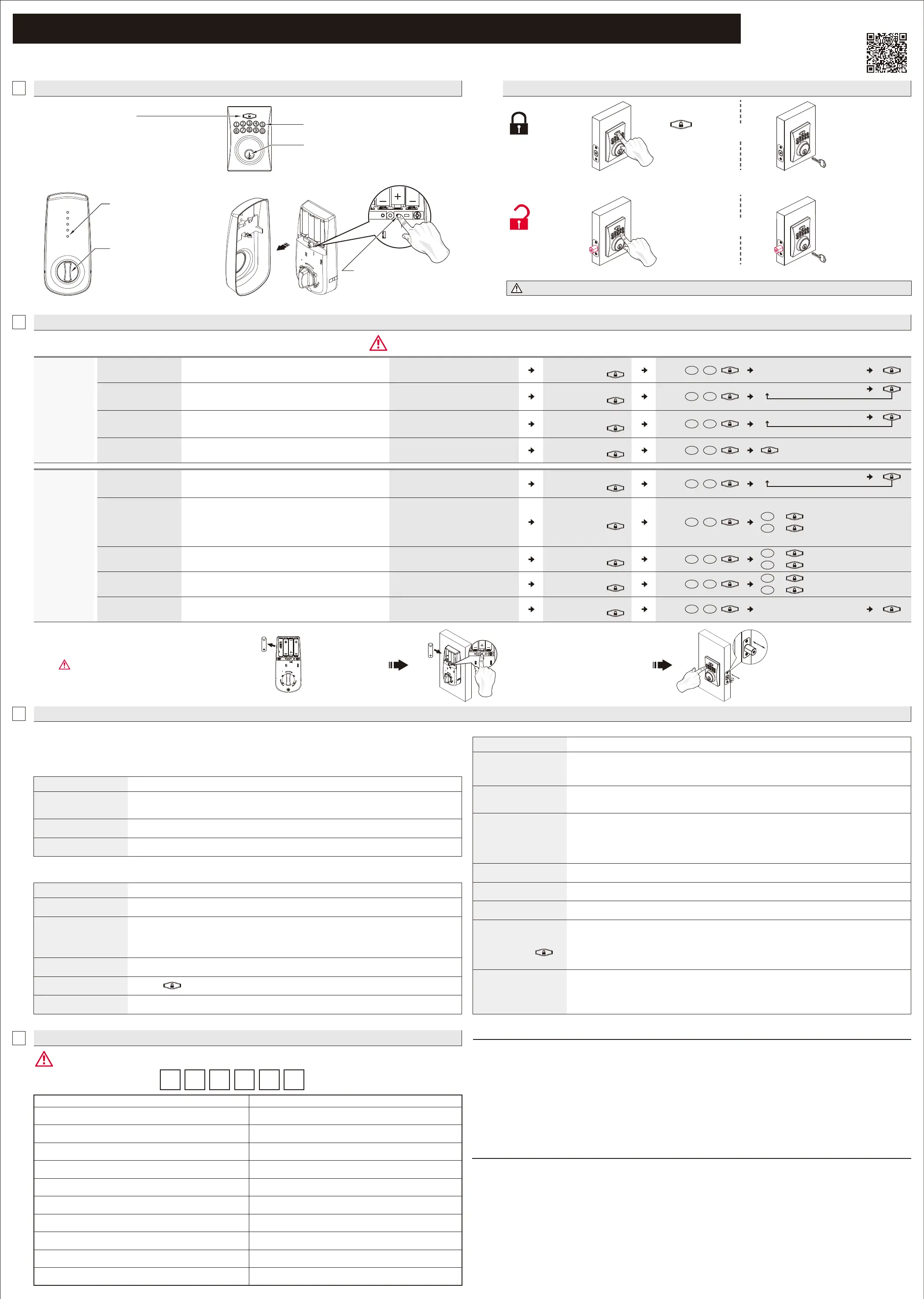 ・The unit can store up to 10 customized User Codes (4-6 digits long).