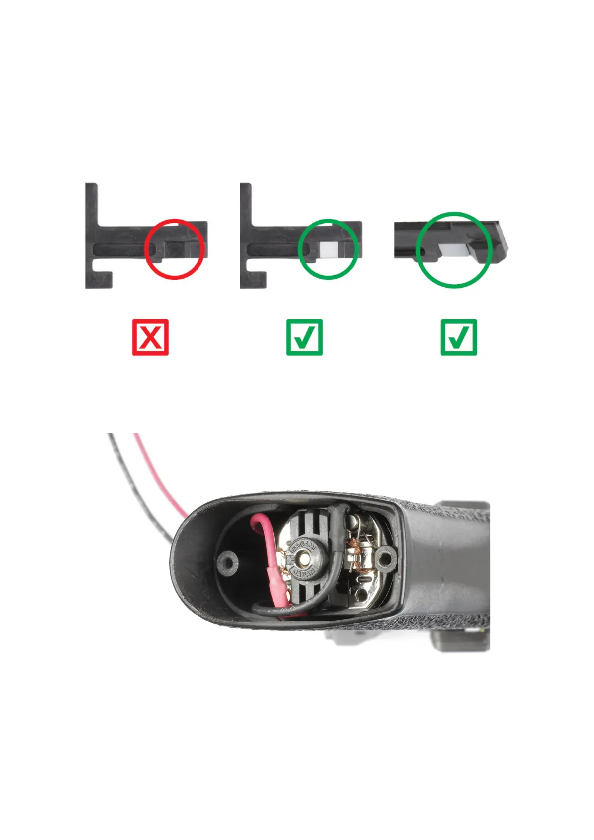 23. The wires in pistol grip have to be placed according to the photo below.
