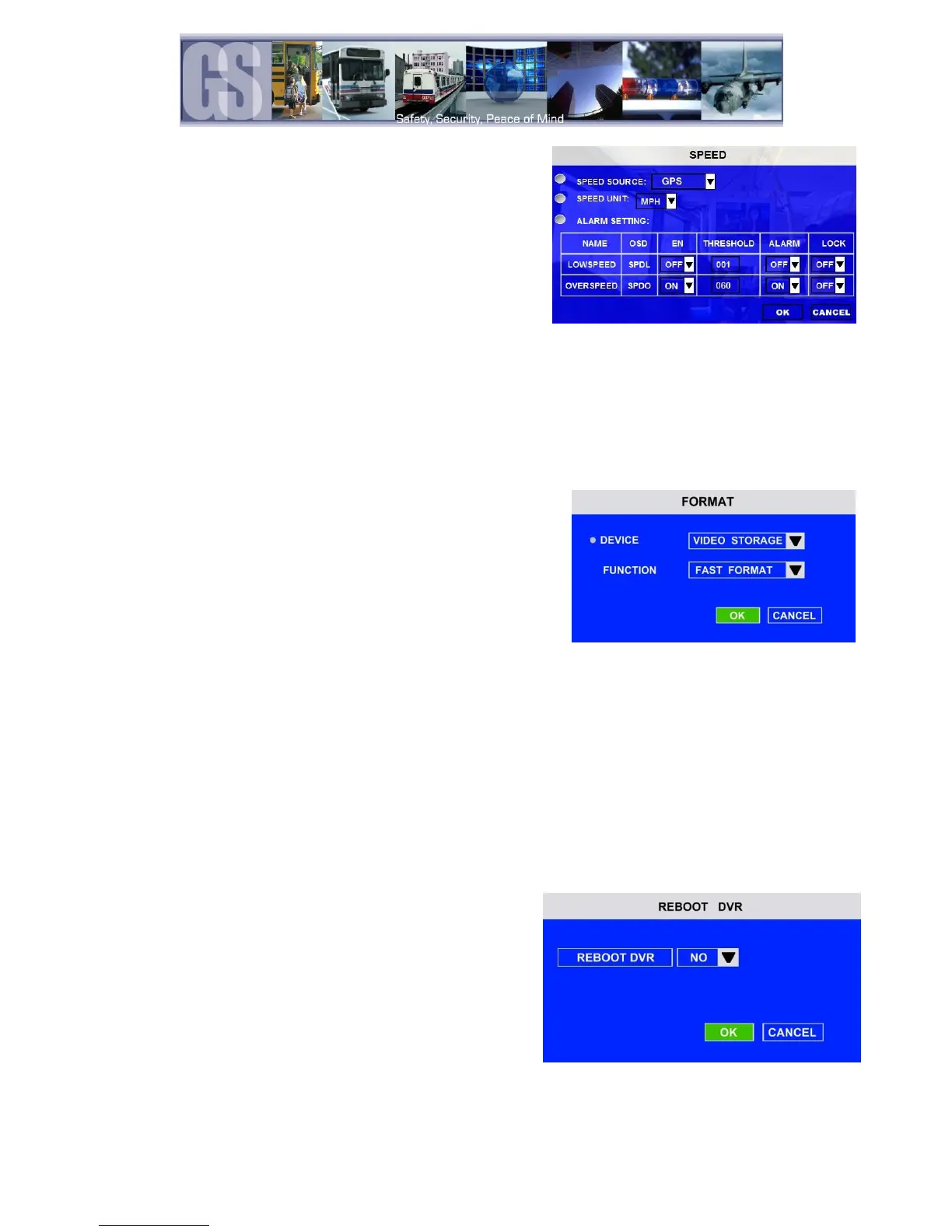 “MDVR will restart, (OK/Cancel)” with the OK button highlighted