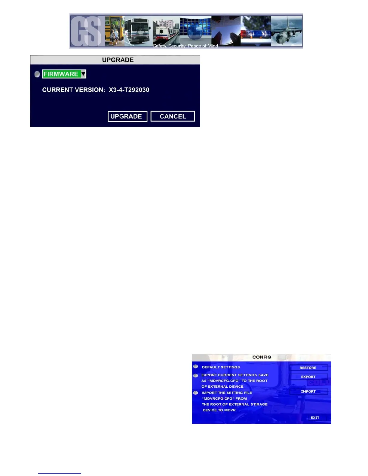 Within the Config menu there are options to Reset to Default; Export the current configuration and