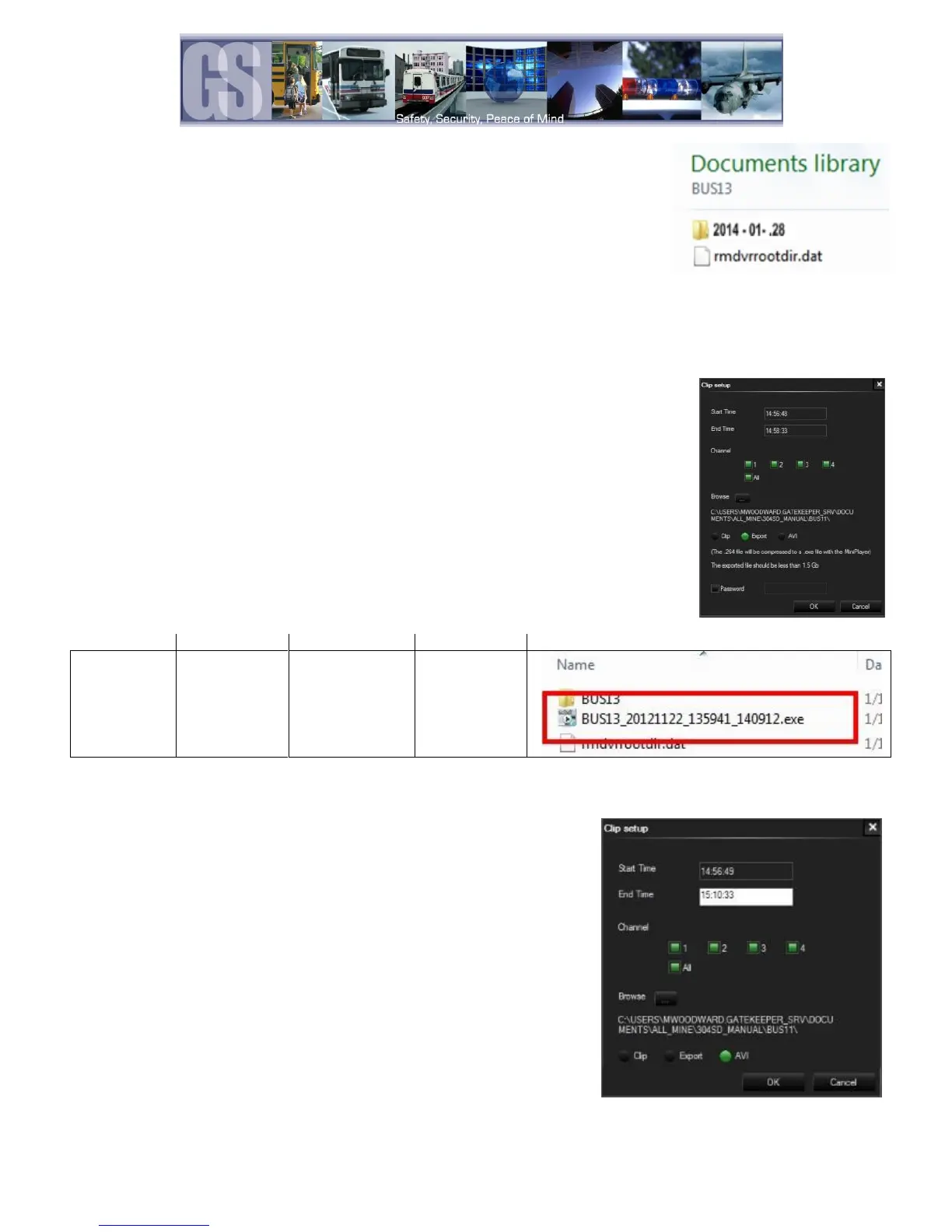 To Export a clip follow Steps 1, 2, 3, 4 in “Saving a Clip”. In place of Clip in Step 5