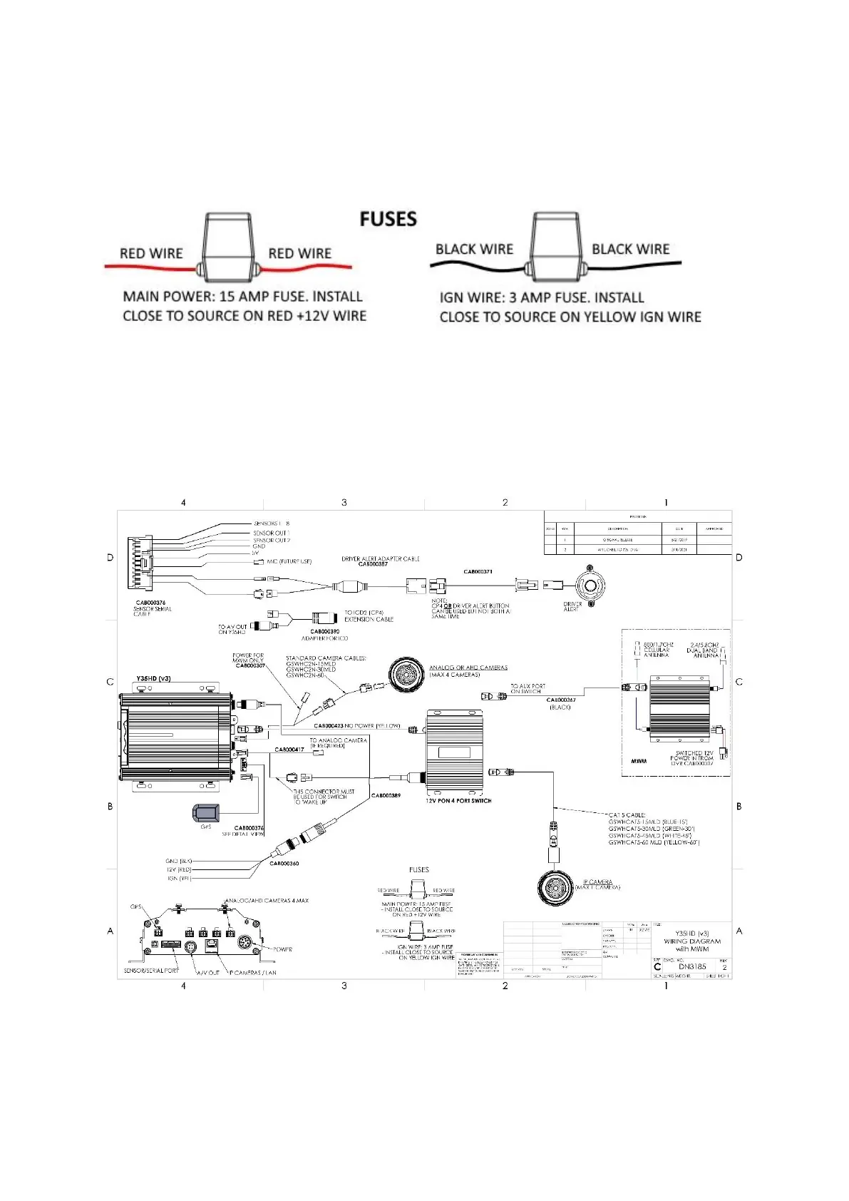 Gatekeeper Y35 HD v3 - Detailed Cabling Diagrams; Fuse Connections; Cabling Diagrams; Figure 9-1 Y35 HD V3 Fuse Connections