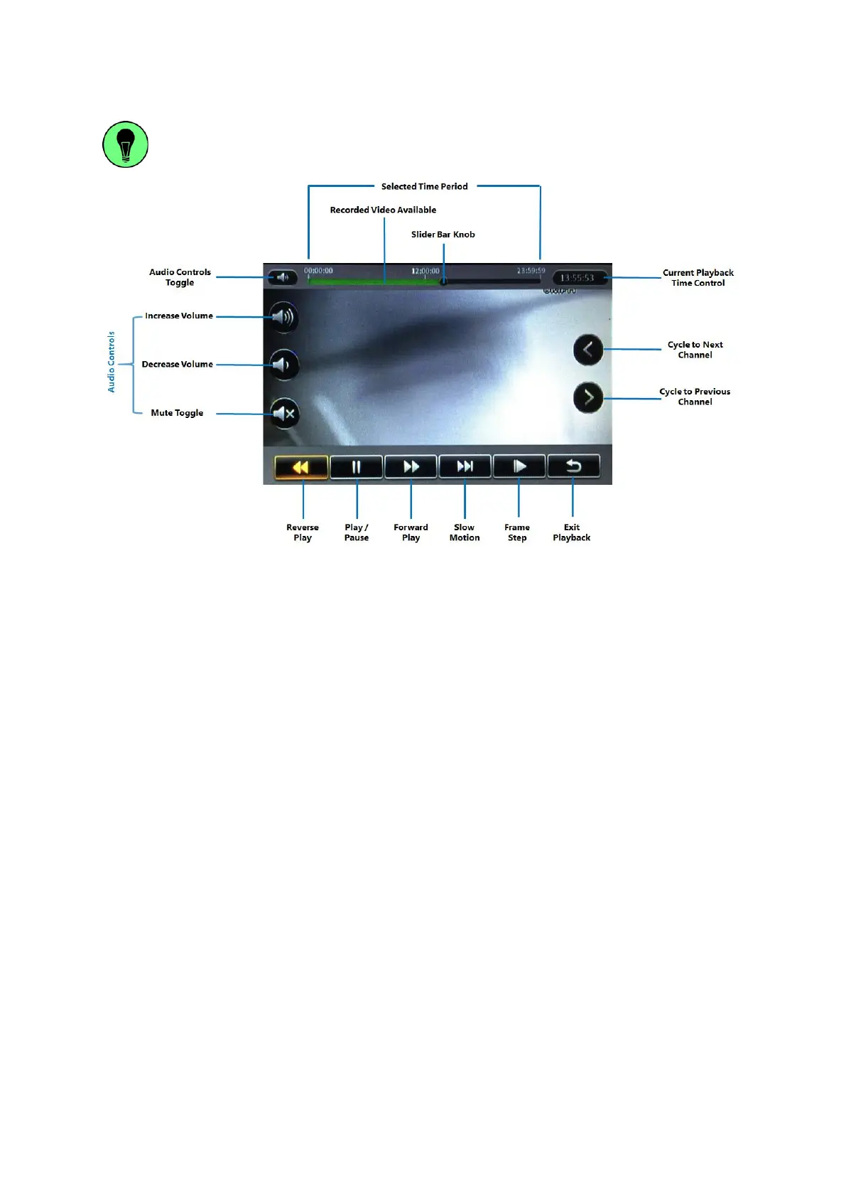 ▪ Recorded Video Available: The green shaded areas in the time bar lets you easily identify where