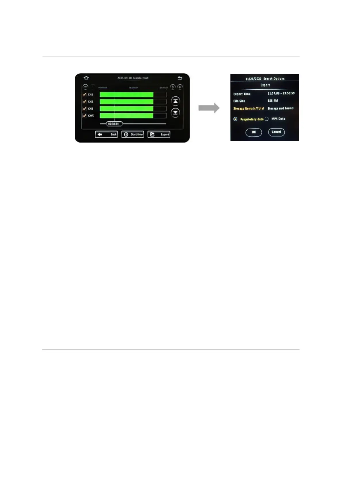 ▪ The video clip data will be exported to the external storage medium USB flash drive