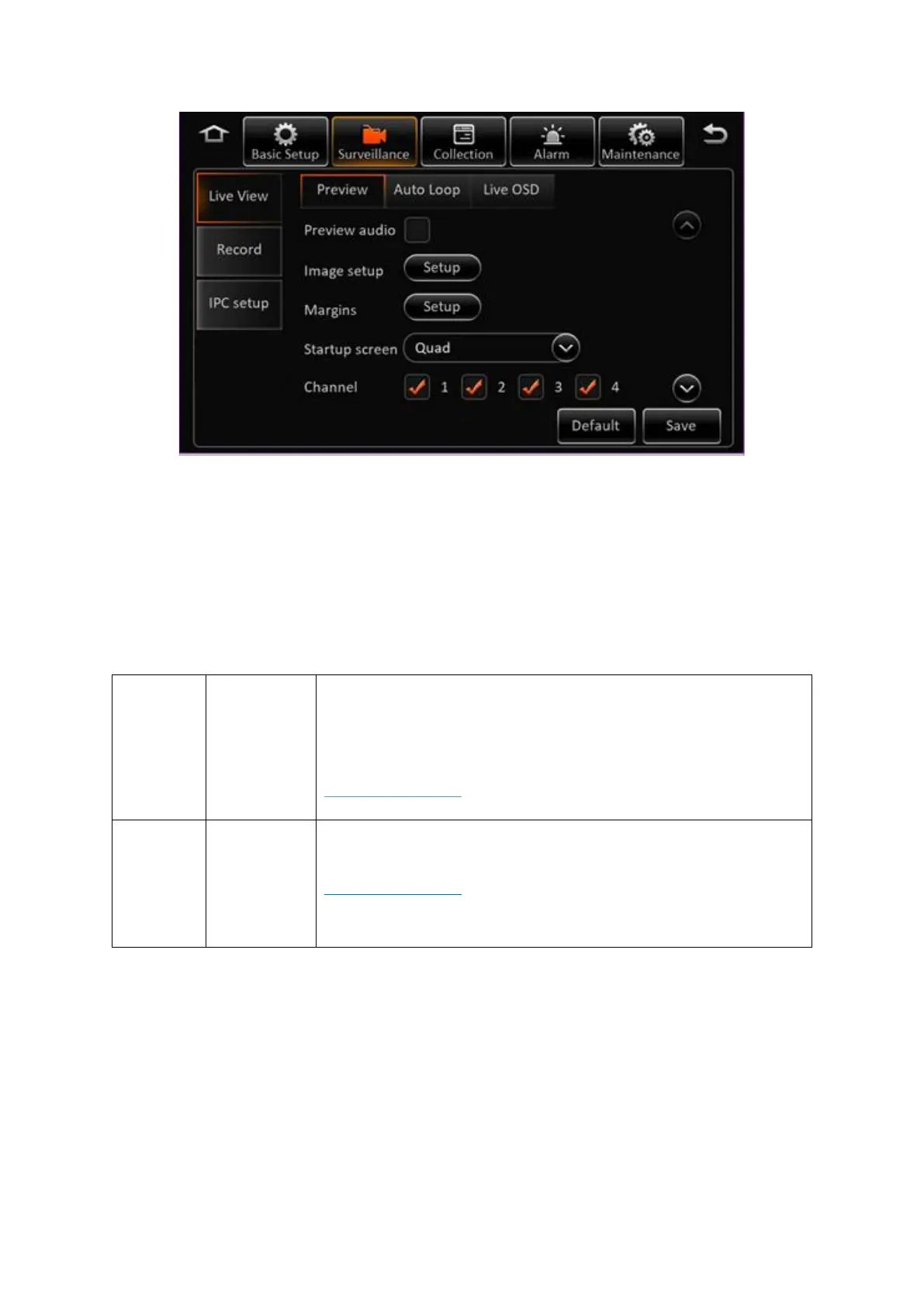 This subsection enables you to configure the settings for the live view of the video coming from the