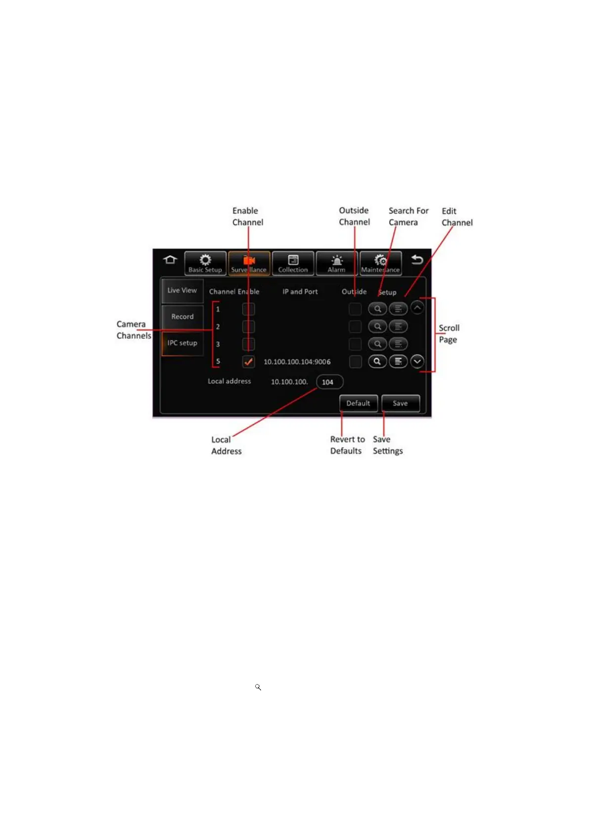 ▪ Scroll Page: Use the (^) and (v) buttons to scroll the list of camera channels up and down