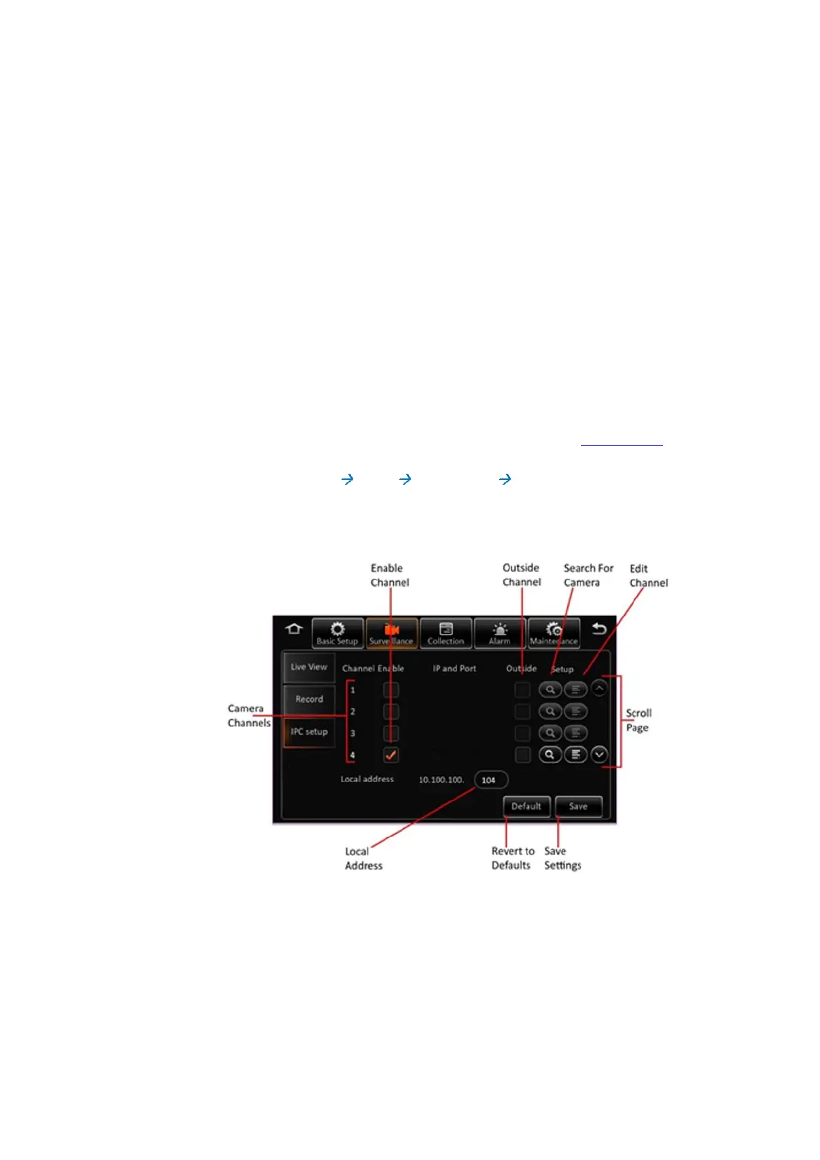 Navigate to: Main Menu Setup Surveillance IPC Setup