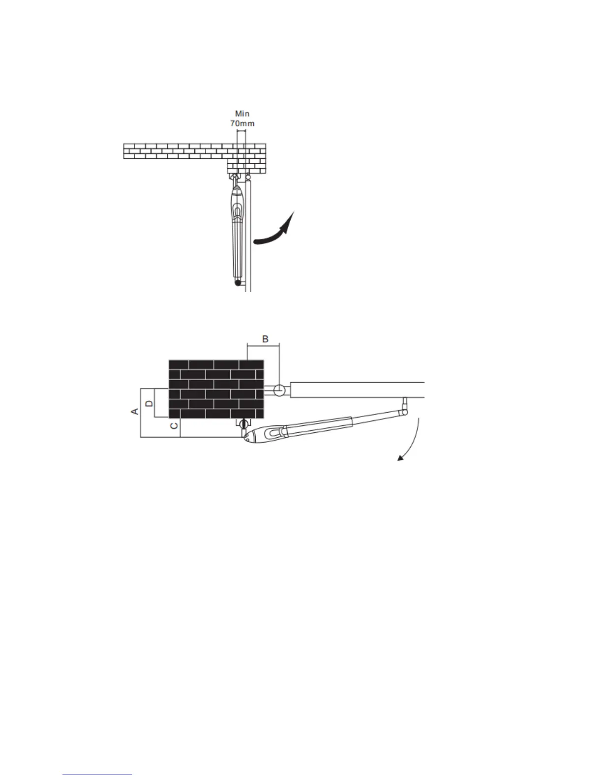 If the gate is OPENED OUTWARD, please leave at least 70 mm (3 inches) between the post