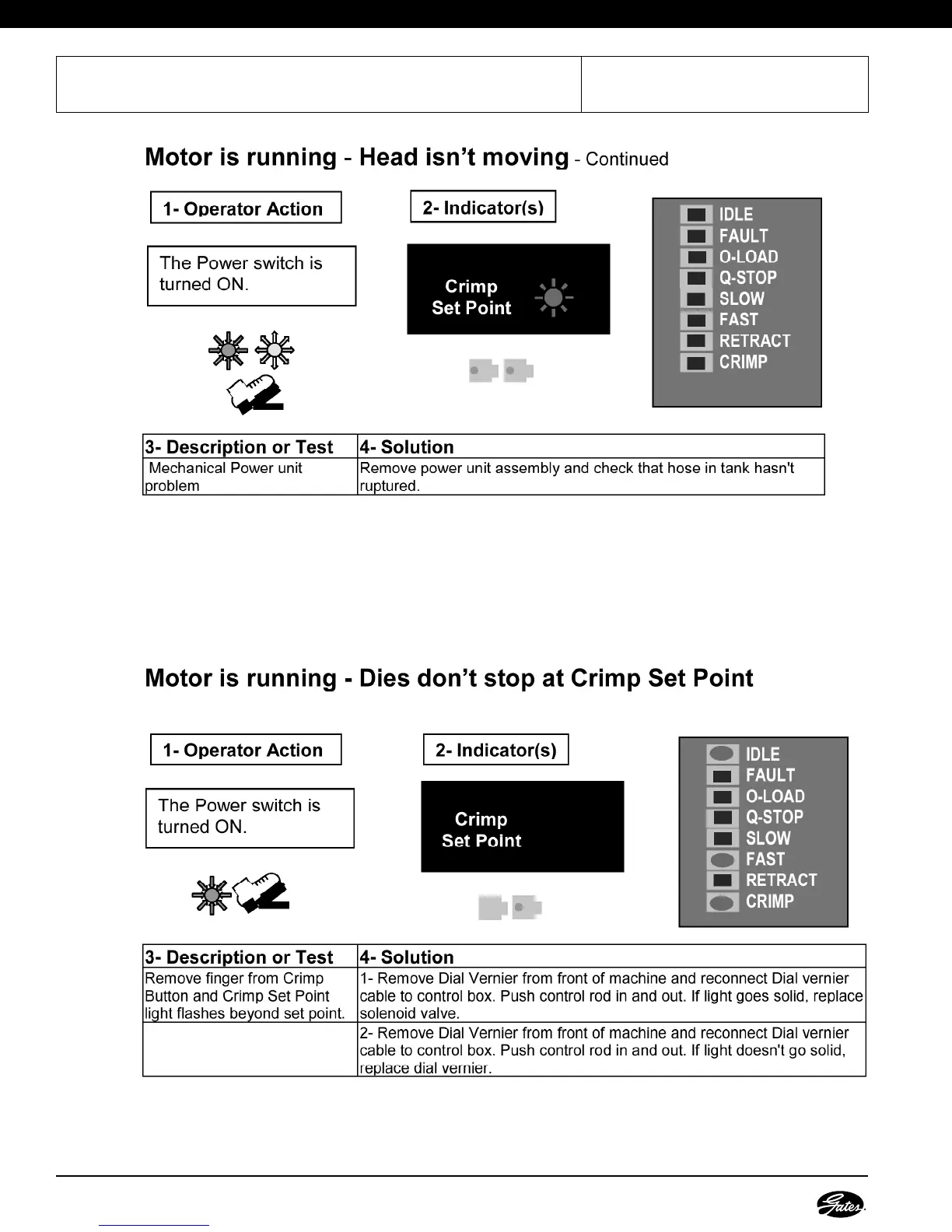 Gates GC32-XD - Advanced Troubleshooting - Set Point Issues; Dies Dont Stop at Crimp Set Point