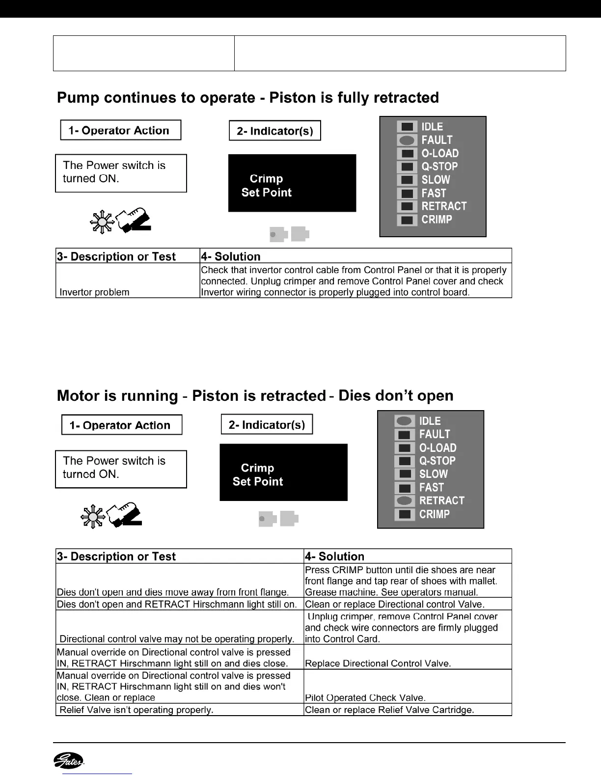Gates GC32-XD - Advanced Troubleshooting - Piston;Dies; Piston Retracted, Dies Dont Open