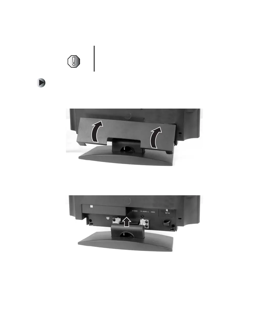 2 Tilt back and lift the cable cover on the back of your LCD TV approximately