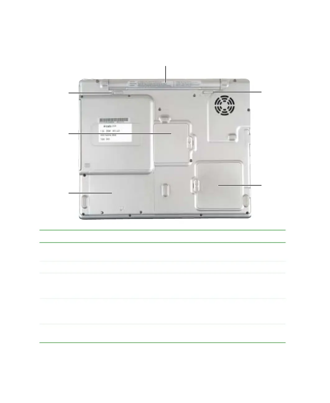 Mini PCI bay The optional wireless Ethernet mini PCI card is located