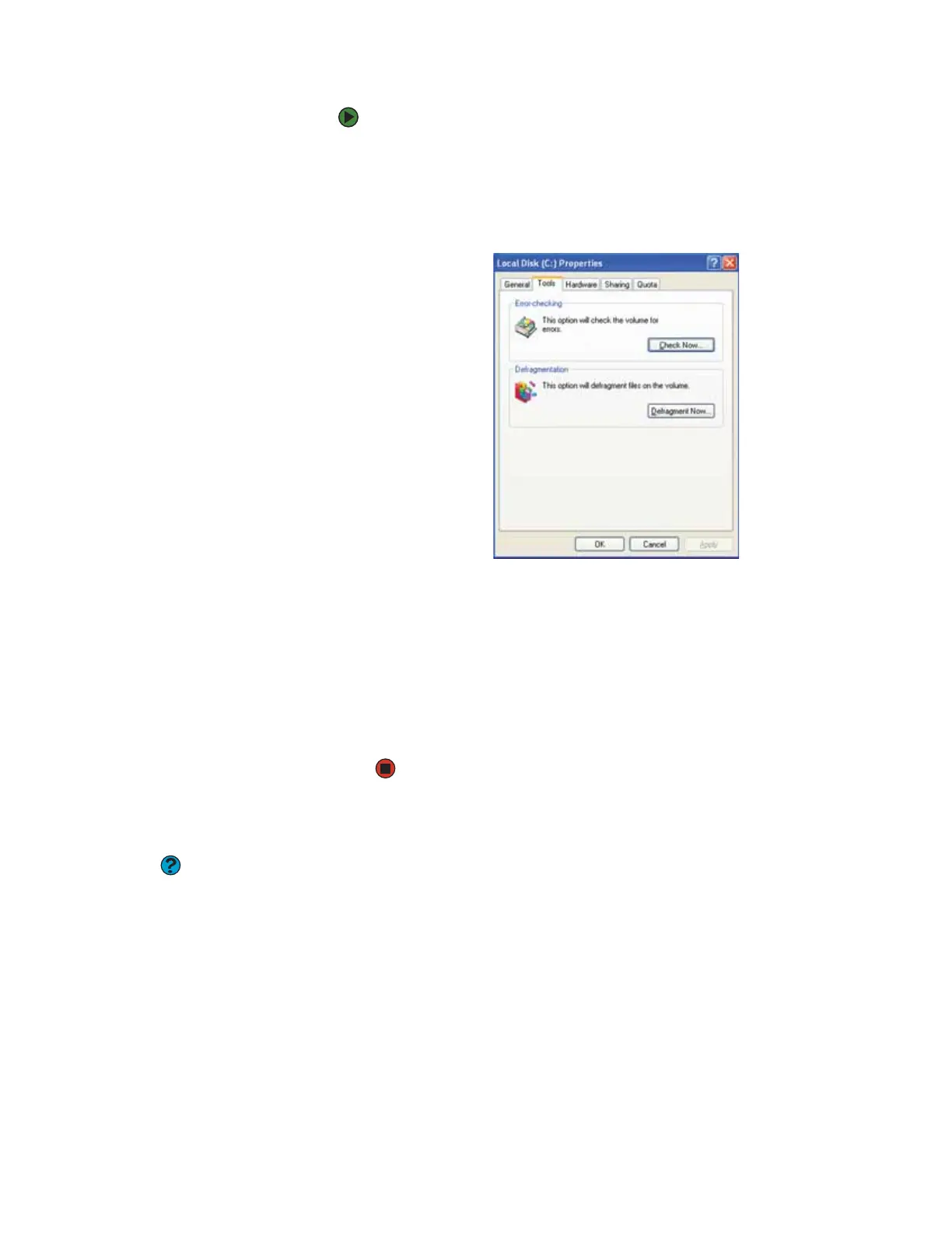defragmenting the hard drive, click Start,