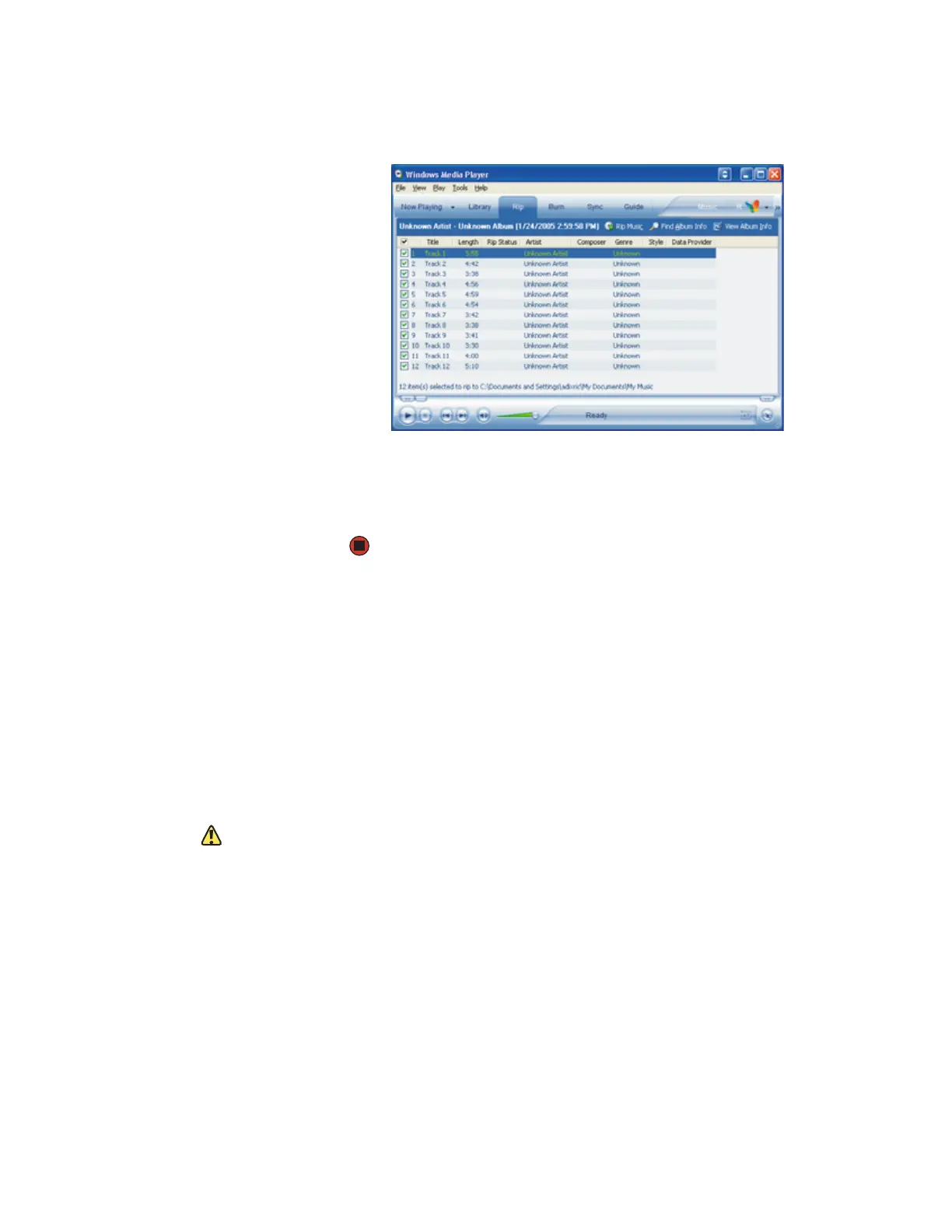 7 Click Rip Music. Windows Media Player records the tracks to your hard