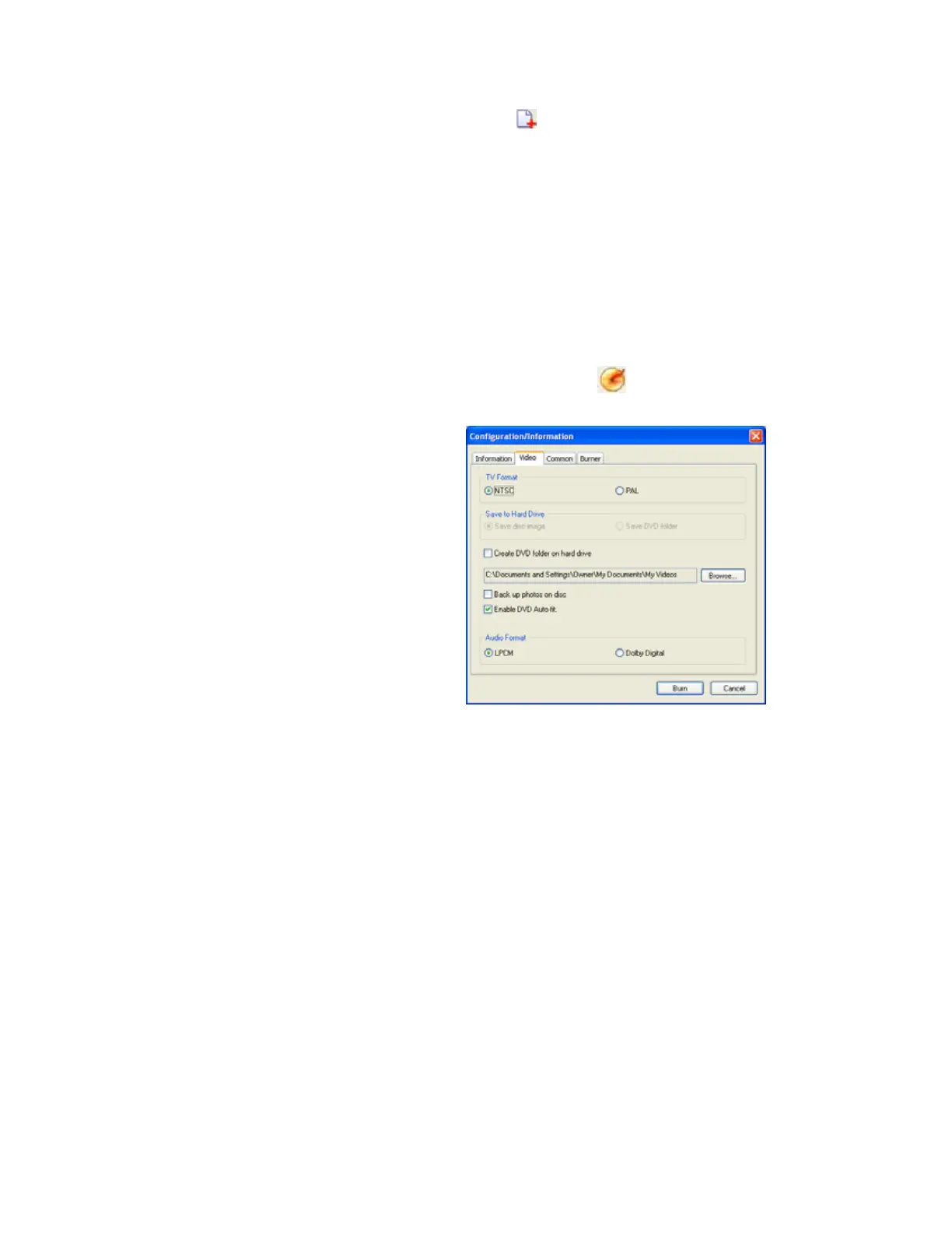 11 After you set up your DVD, click . The Configuration/Information dialog