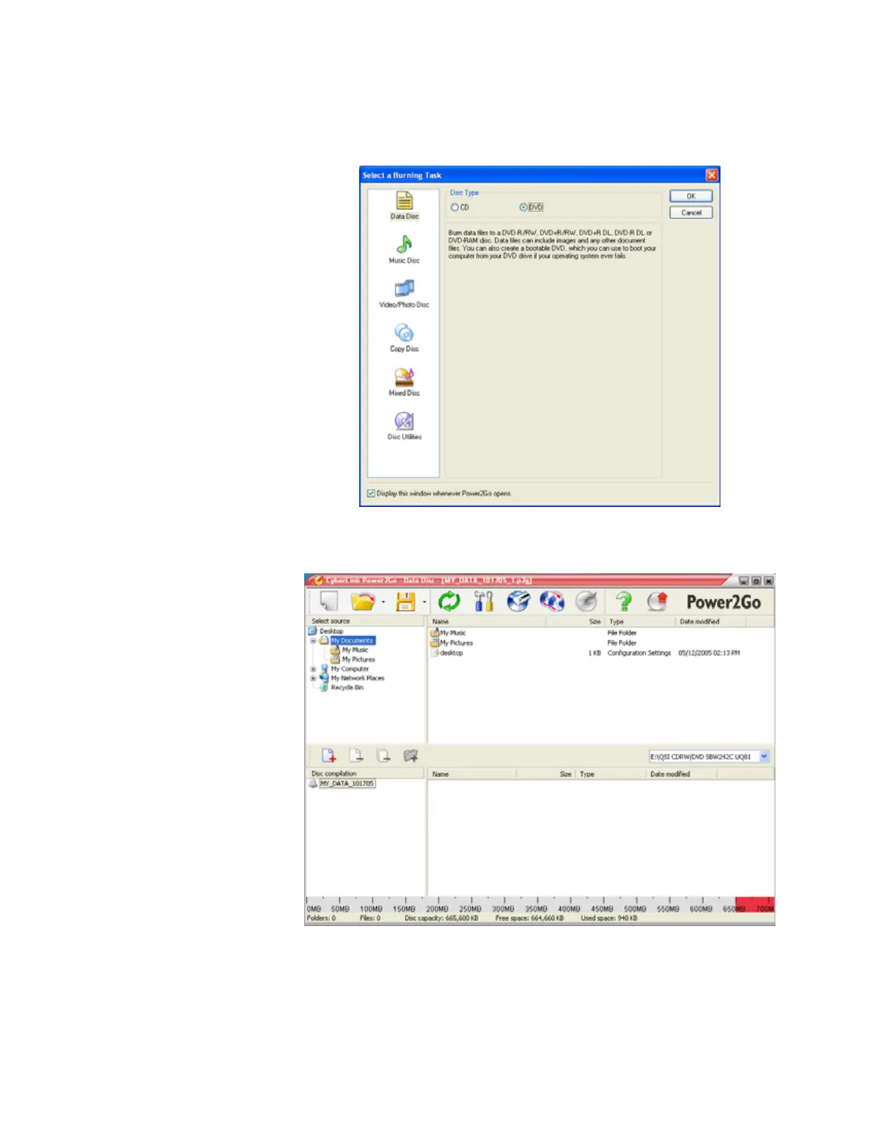 click Power2Go. Power2Go opens along with the Select a Burning Task