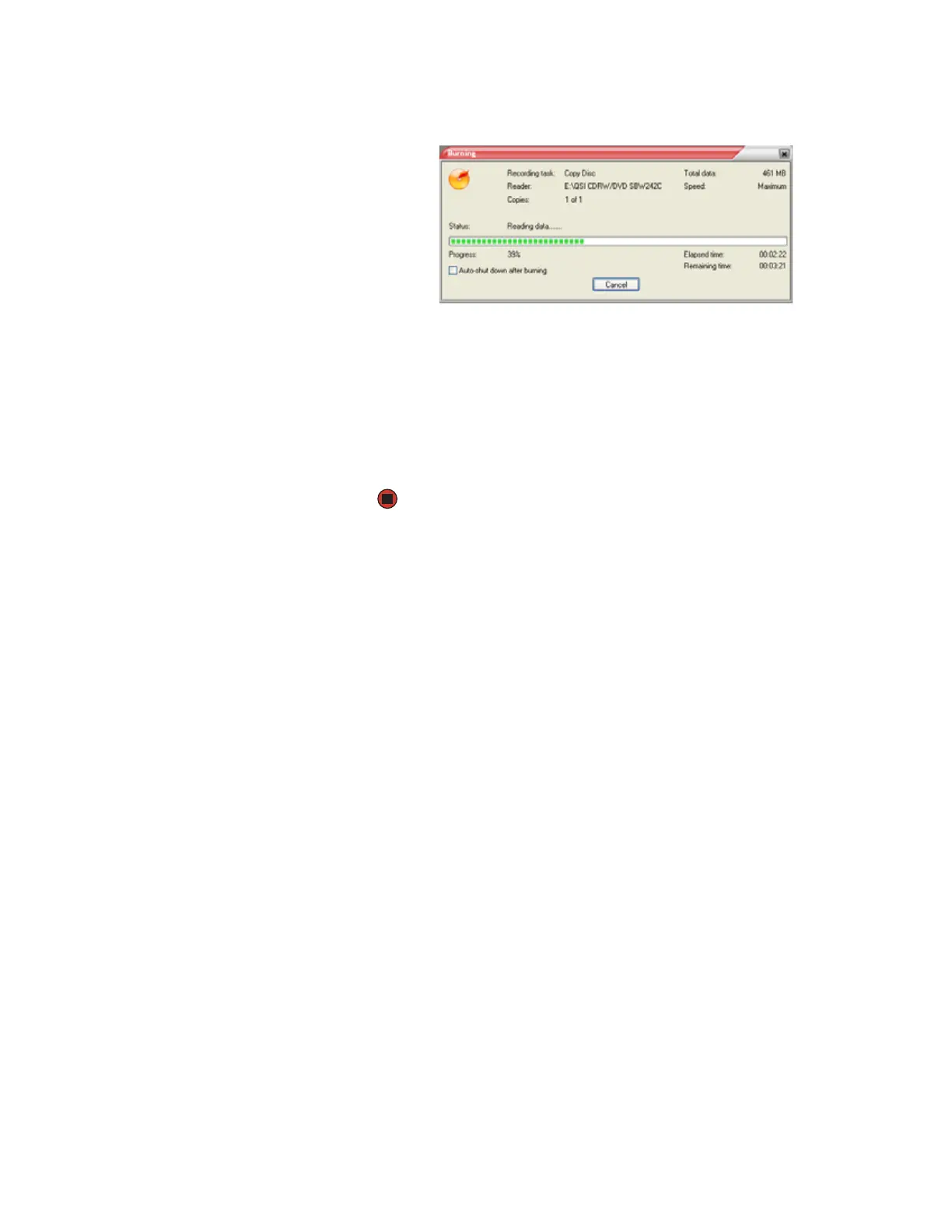 6 Click Copy. The Burning dialog box opens.