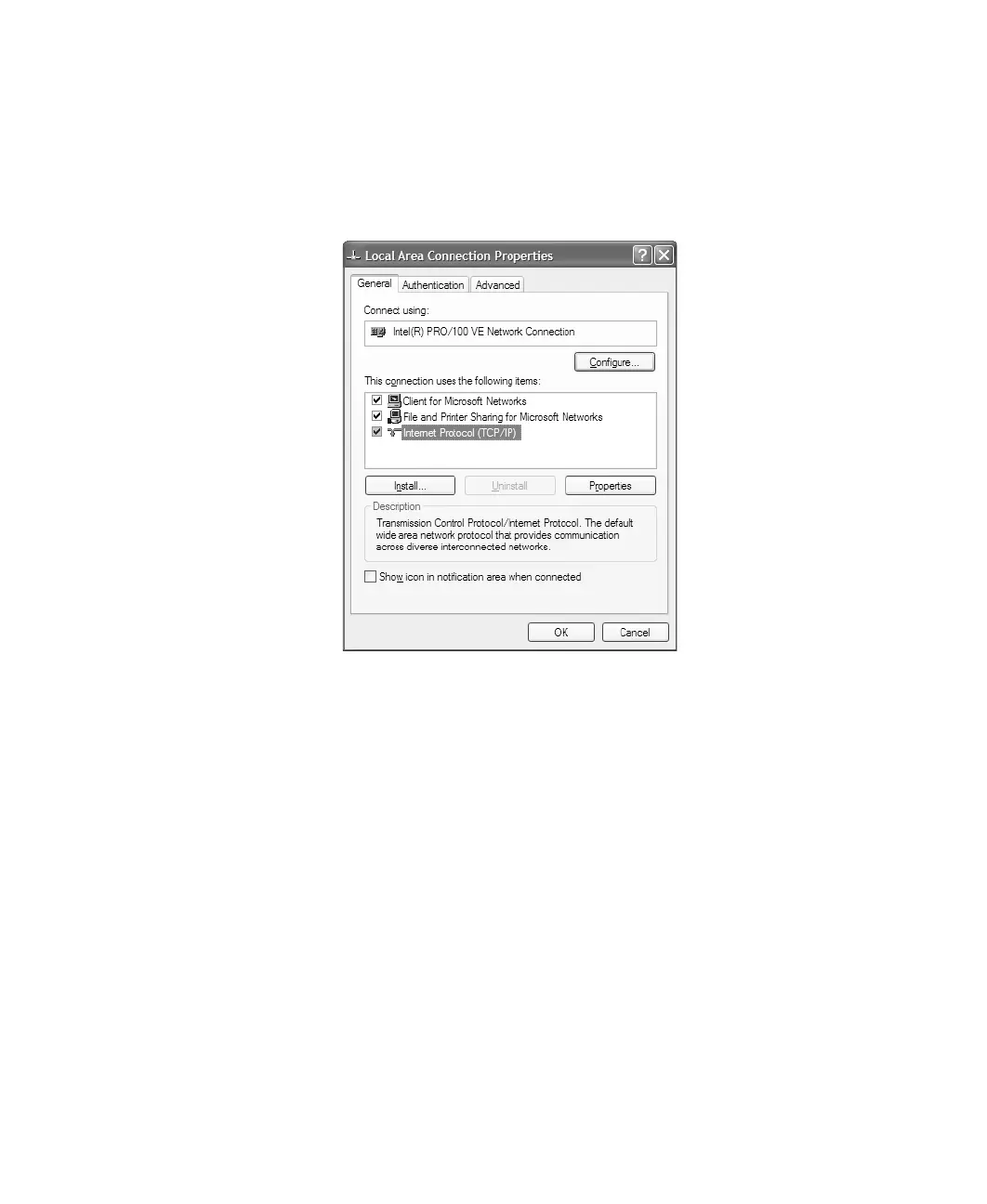 4 Click to select the Internet Protocol (TCP/IP) check box in the This connection uses the