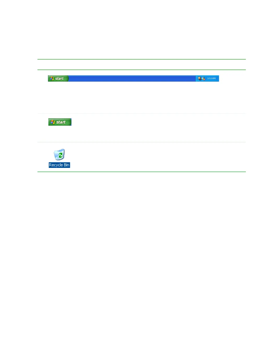 The desktop contains the taskbar, the Start button, and the Recycle Bin icon.