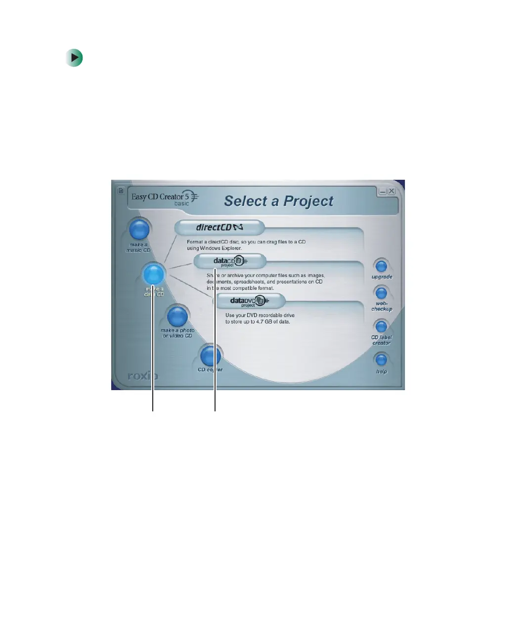 Start, All Programs, Roxio Easy CD Creator,