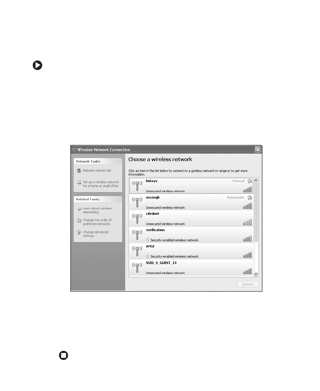 4 Click the network you created in the Choose a wireless network list, then click Connect.