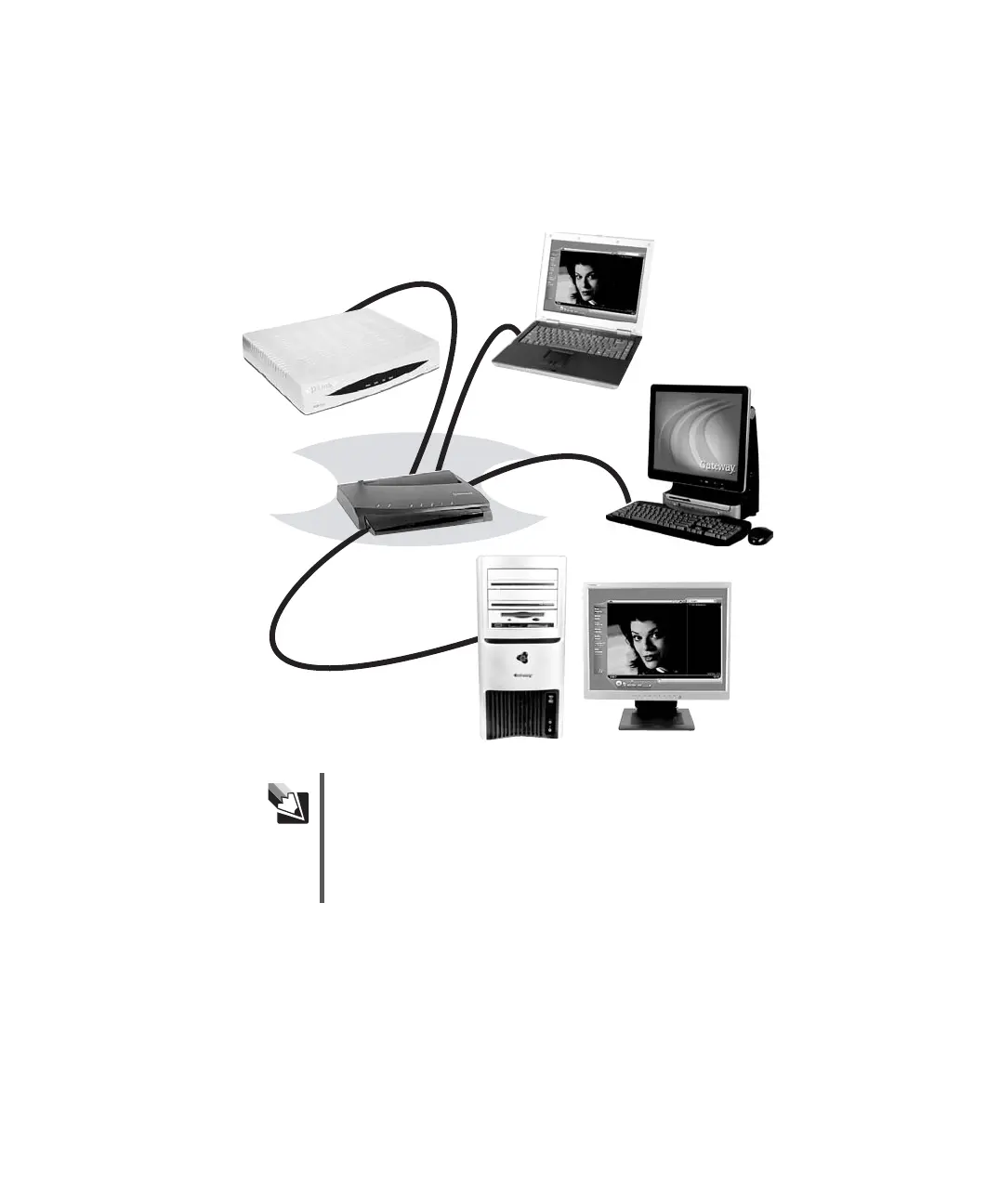 are all of your computers or Ethernet-ready devices. Also connected to the router is a cable