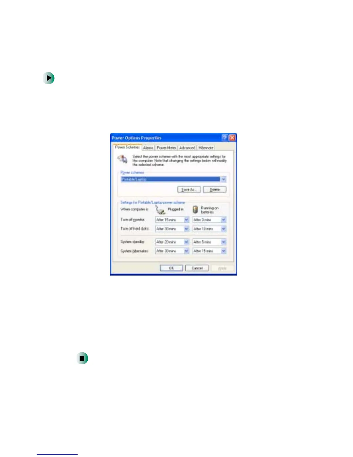 3 Click the arrow button to open the Power Schemes list, then click the power