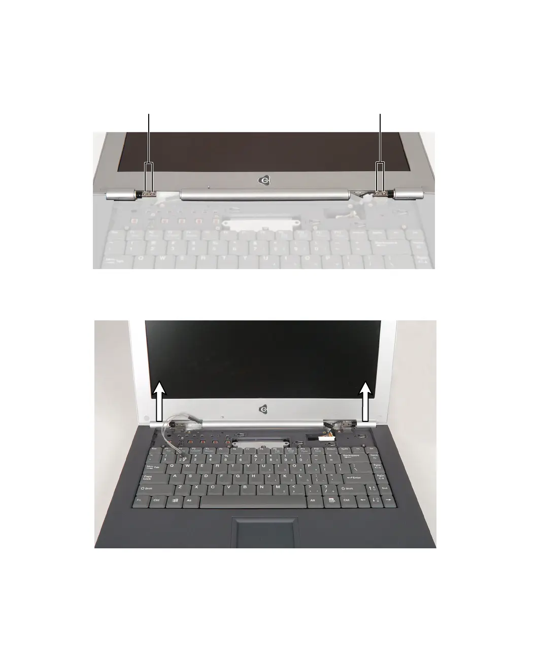 12 Move the LCD panel upright, then lift it from the notebook. The LCD panel