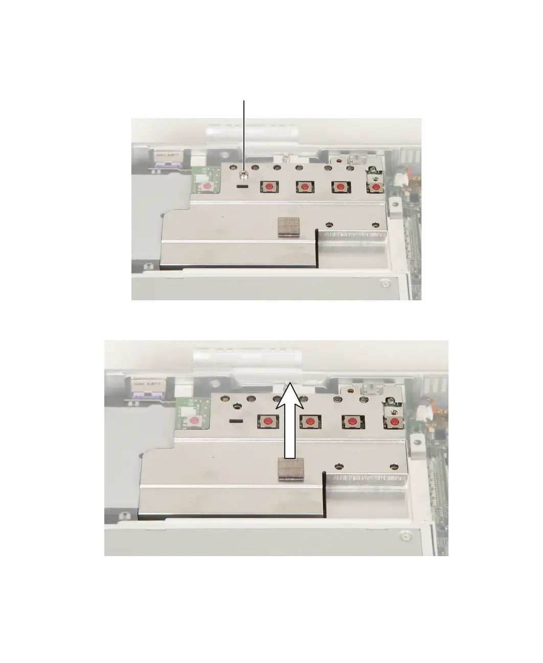 12 Remove the single screw that secures the LED indicator panel shield to the